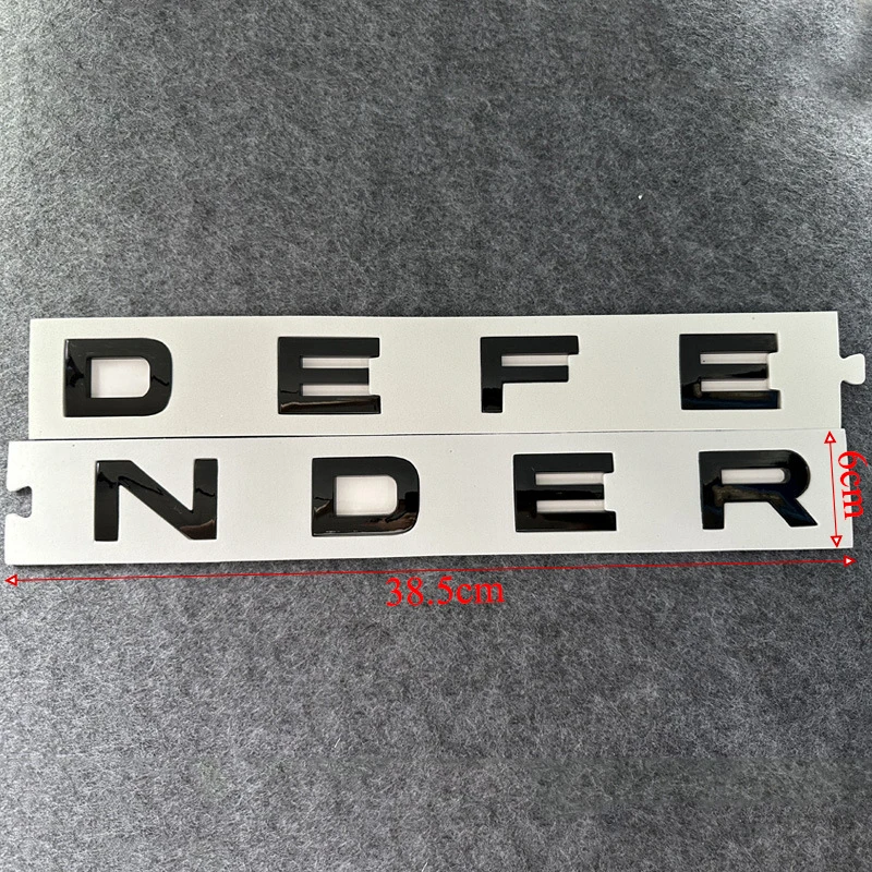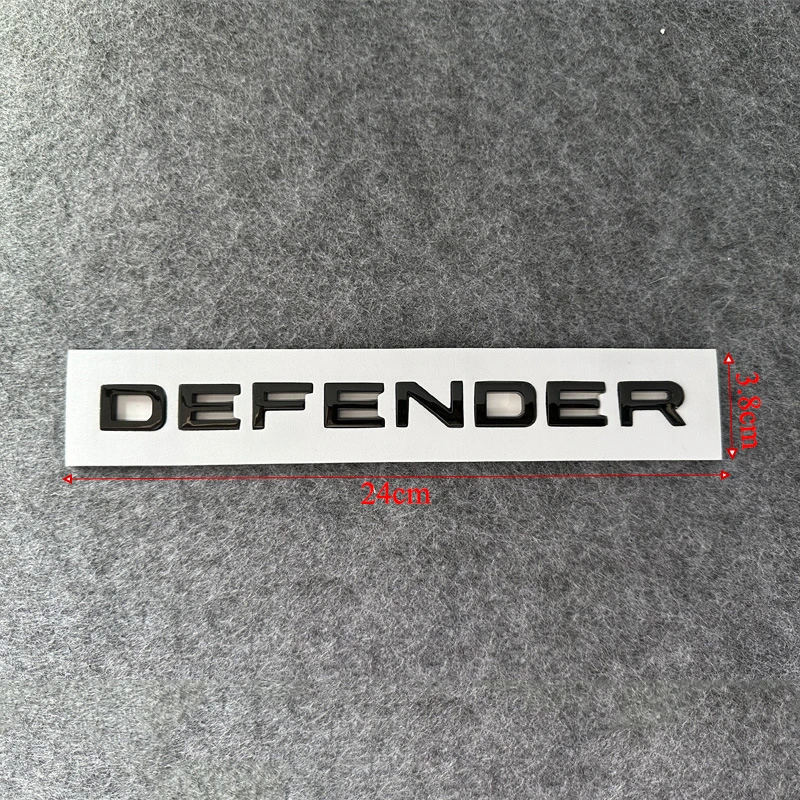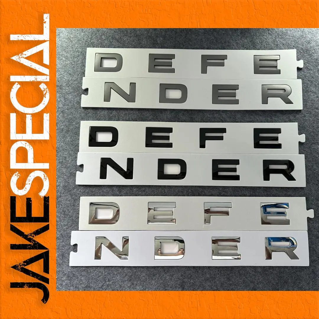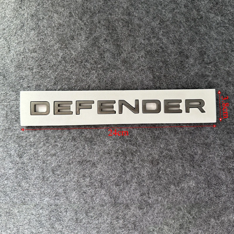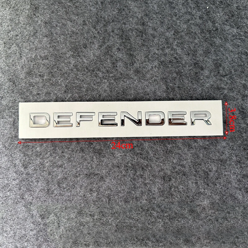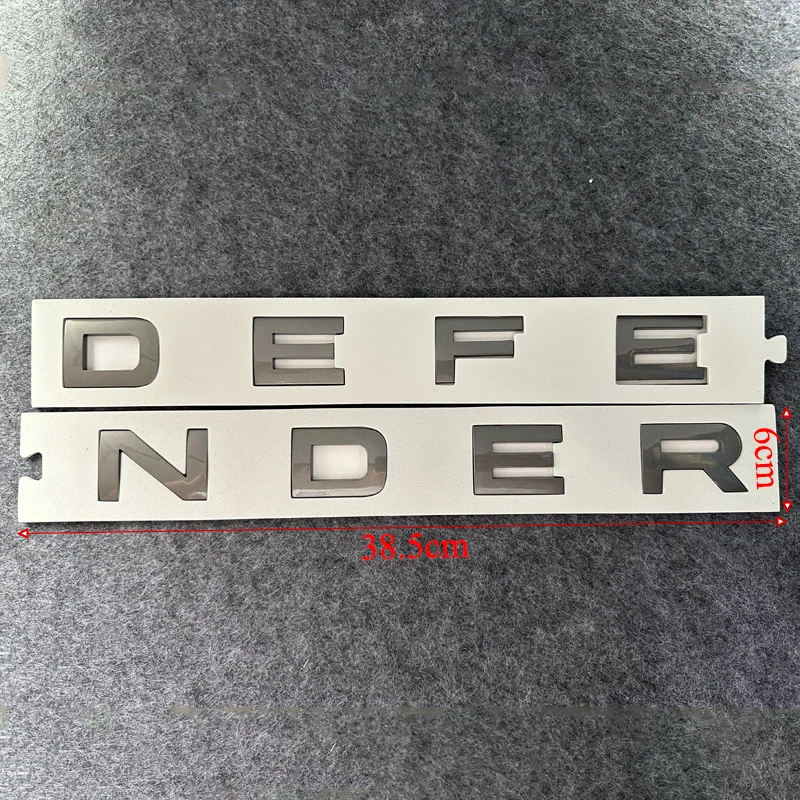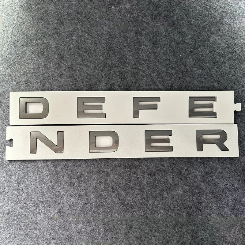 Enhance your Land Rover Defender (2020-2023) with this set of 3D ABS chrome-style letter logos and decals, featuring bold, raised lettering with a sleek, glossy metallic finish in grey, glossy black, or glossy silver. Each sticker measures 38.5 cm in length, 6 cm in width, and 0.5 cm in height, designed for front hood, rear, trunk, or body emblems to provide a sophisticated, high-quality look. Made from durable ABS material and certified for quality, these decals easily peel off for a precise installation, giving your vehicle a premium, polished appearance that stands out on the road.