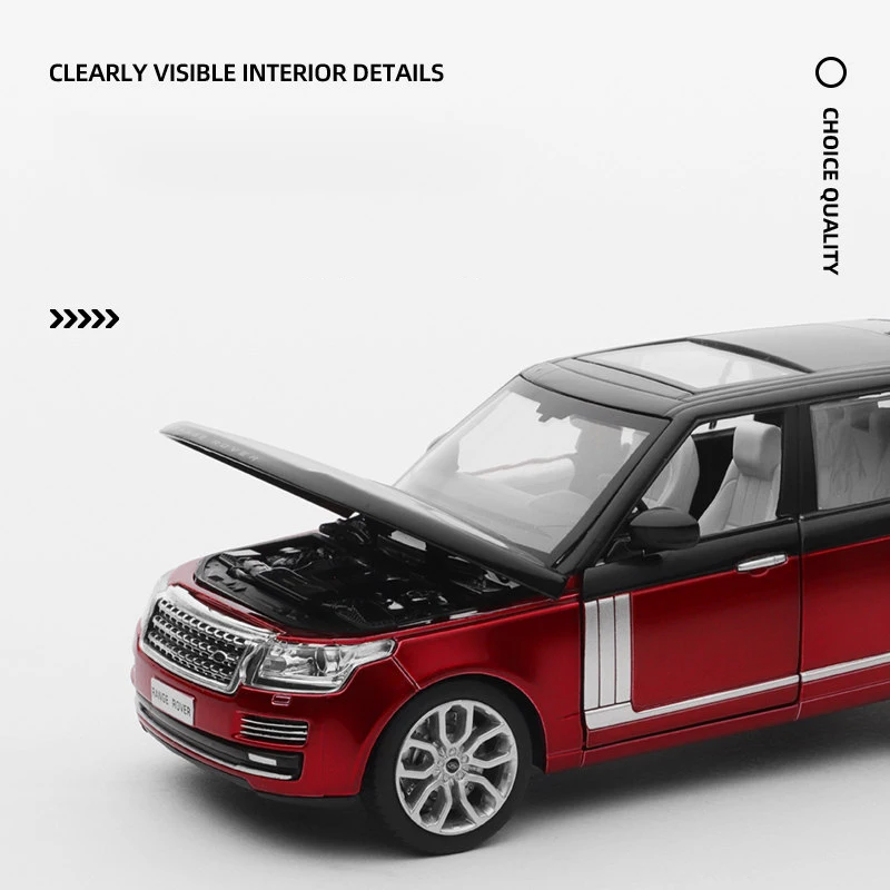 - This 1:26 scale replica measures precisely, with a detailed front grille, alloy wheels, and body contours that reflect the iconic Land Rover Range Rover Sport design.