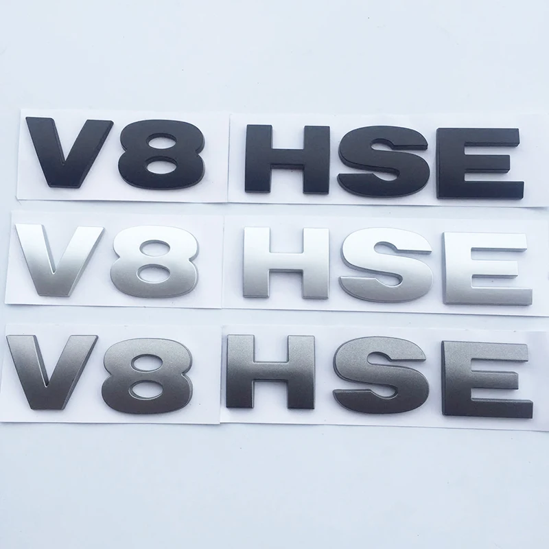 - Design includes “V8” and “HSE” badges with a sleek, three-dimensional, metallic appearance.