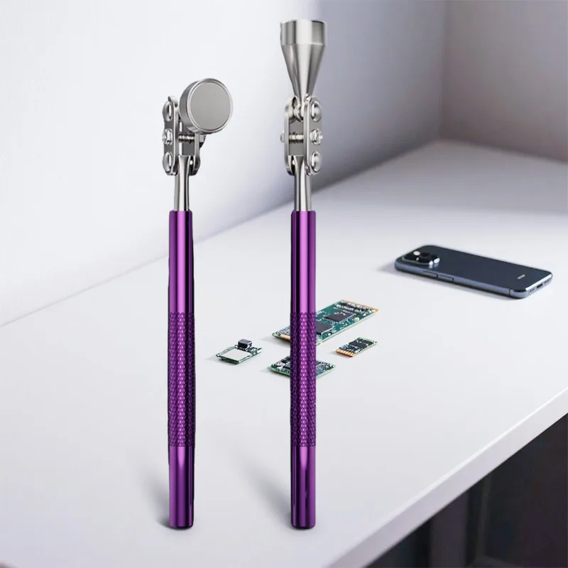 Experience precise and reliable motherboard layer removal with the Lanrui G4 Explosion-proof Delaminator. Crafted from durable metal, this specialized repair tool features a 340° rotating head with a spherical joint for flexible operation, enabling detailed work on layered circuit components. The ergonomic handle, accented with a vibrant purple grip, ensures comfortable handling, while strong magnetic adsorption provides added stability during delicate repairs. Designed for phone repair professionals, the G4 model includes a compact case for organized storage. Its sleek, industrial aesthetic in metallic silver with black accents highlights high-quality craftsmanship. Trust this innovative tool to enhance your electronic repair process with accuracy and efficiency.