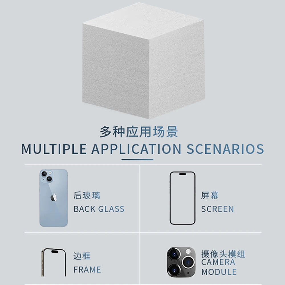 The Lanrui LR-S9 Nano Cleaning Sponge set includes 500 high-density, pre-cut white cuboid sponges designed for precision cleaning in mobile phone repair and electronics maintenance. Made from nano-materials, these sponges offer superior adsorption power, durability, and scratch-free cleaning without shedding or residue. Ideal for cleaning back glass, frames, screens, and camera modules, they work effectively with various cleaning agents like alcohol and degreasing liquids. The lightweight, smooth-edged design ensures safe, delicate handling of sensitive components, making them an essential tool for professional repairs and household electronics care.