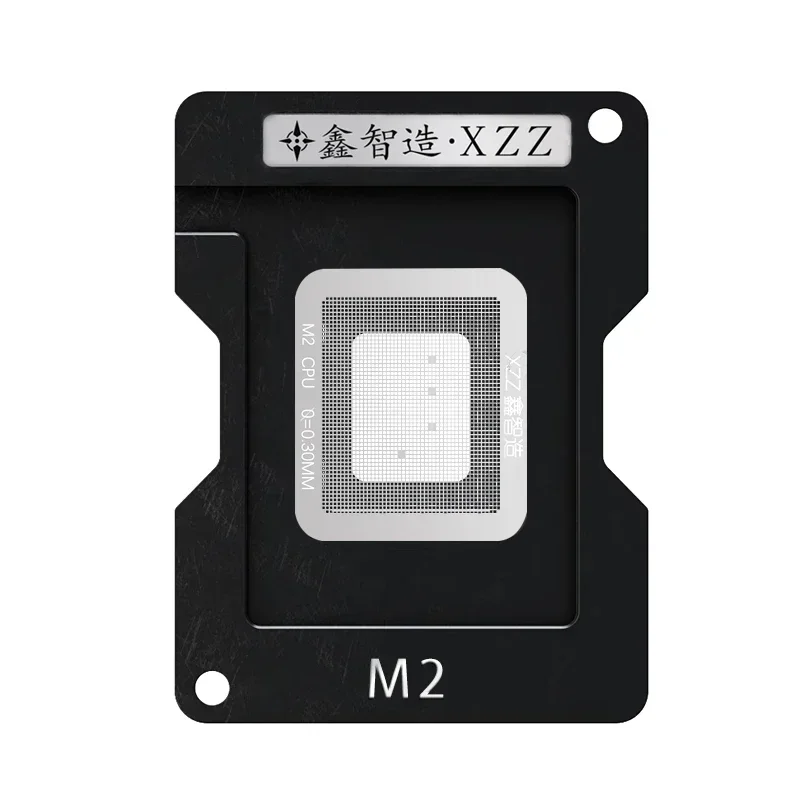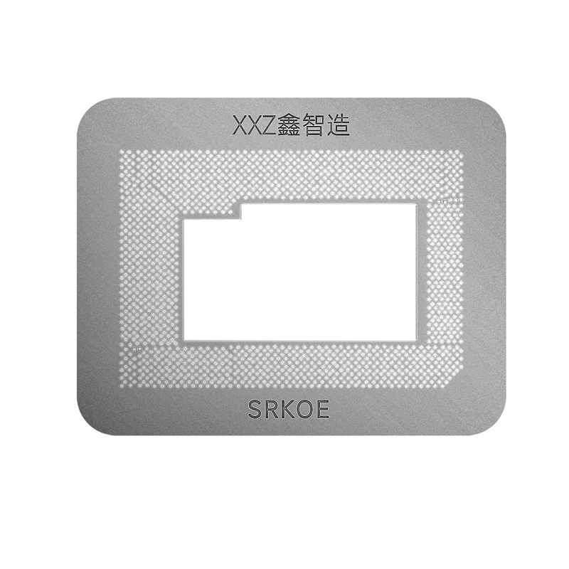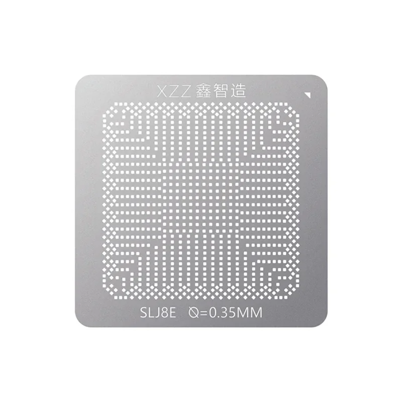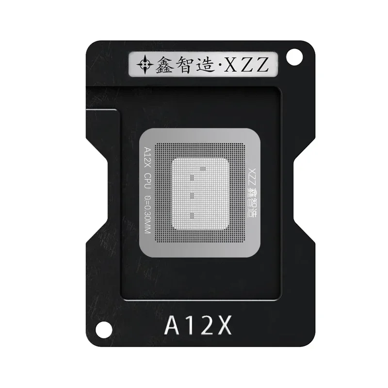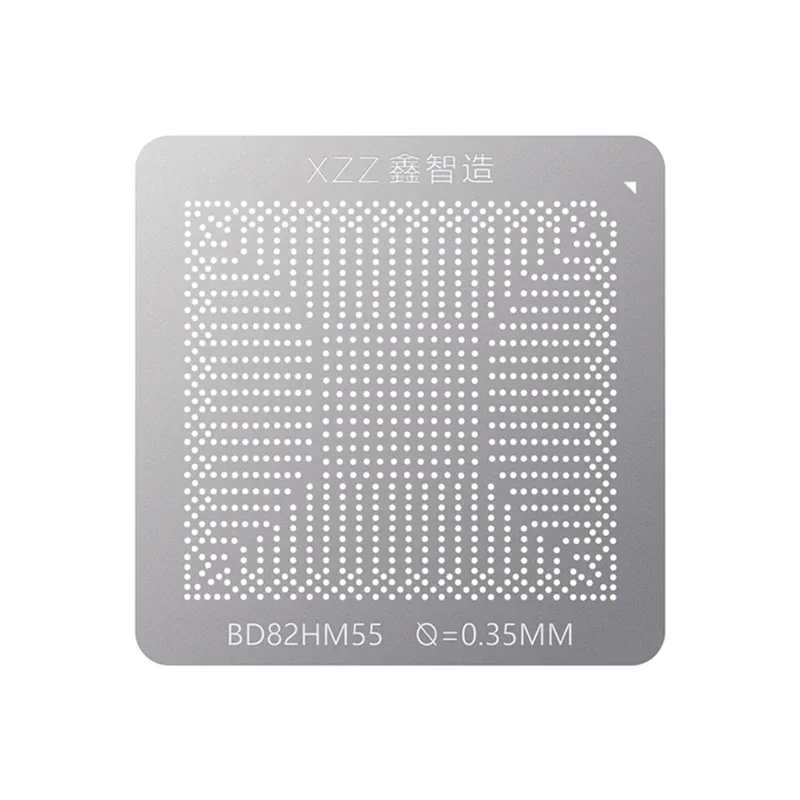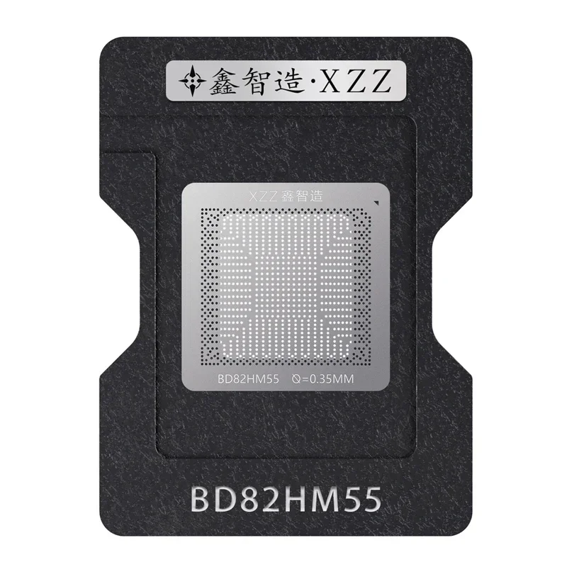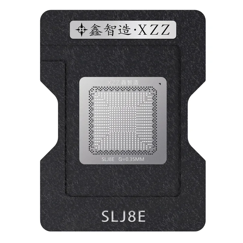 This BGA reballing stencil is designed for laptop CPUs, compatible with models including SLJ8E, A12X, BD82HM55, M2, CXD90060GG, SR15F, SR33N, SRKOE, and A1990/1707, featuring a universal base for versatile use. Crafted from high-quality, chemical-free materials, this precision stencil showcases intricately patterned rectangular and square openings with fine mesh textures, housed within a sleek black frame to ensure durability and ease of handling. Its methodical, minimalist design offers optimal accuracy for DIY electrical repairs and reballing applications. Packaged in a practical bag, this versatile tool is an essential addition for professional technicians and enthusiasts alike, providing reliable, technical craftsmanship tailored for intricate BGA work.