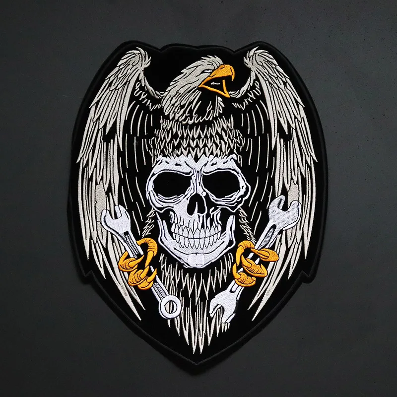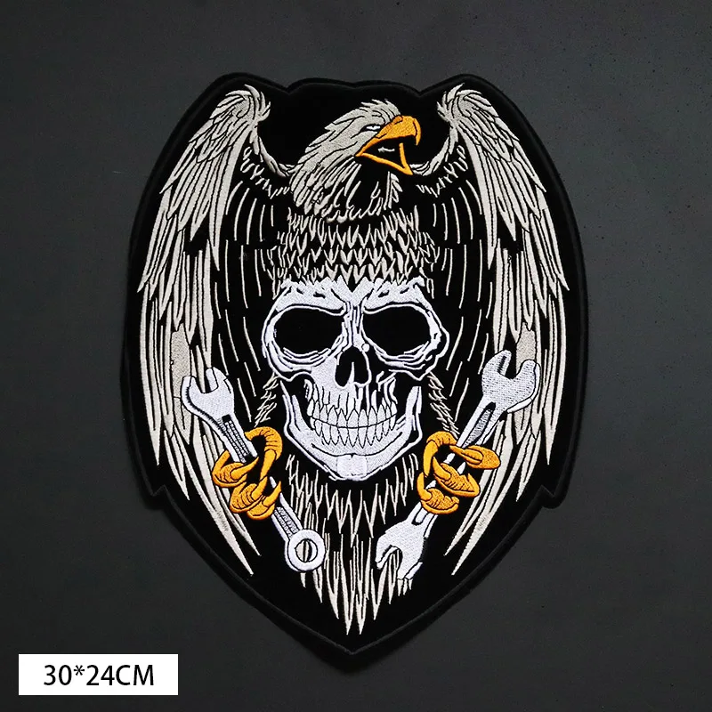 Elevate your wardrobe with this striking Large Size Eagle Patch, meticulously crafted to showcase a captivating skull design, fierce eagle, and mechanical elements. Measuring approximately 30×24 cm, this patch is made from non-woven fabric and features a vibrant embroidered detail that makes it a perfect fit for your punk biker aesthetic. Designed for iron-on application, it can easily embellish jackets, bags, and other apparel. With its unique 3D and handmade qualities, this eco-friendly patch not only adds character but also becomes a conversation starter among fellow enthusiasts. Enjoy the freedom to express your individuality with this fashionable and edgy accessory.