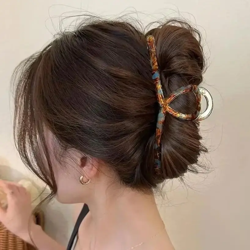 Experience the perfect blend of vintage charm and minimalist design with this large French-style acetic grab clip. Measuring 13 centimeters (5.11″), it is crafted from alloy and plated materials, offering a durable yet lightweight accessory. The semi-translucent matte finish enhances its understated elegance, making it suitable for casual or sophisticated hairstyles. Its broad, curved silhouette with rounded edges allows you to easily secure curly or thick hair in a bun or twist, while the textured surface adds a subtle aesthetic detail. Whether you're aiming for a retro vibe or a sleek modern look, this versatile clip is designed to elevate your hair game effortlessly, providing both function and style for everyday wear.