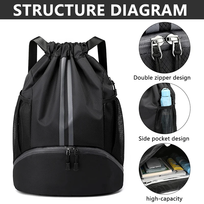 Imagine the convenience of organizing your gear just the way you like it, with easy access to everything you need. This Large Outdoor Drawstring Backpack is crafted to enhance your journey, providing comfort and style in one package. Don't miss out on transforming the way you travel or engage in sports activities. Equip yourself with this essential bag today!