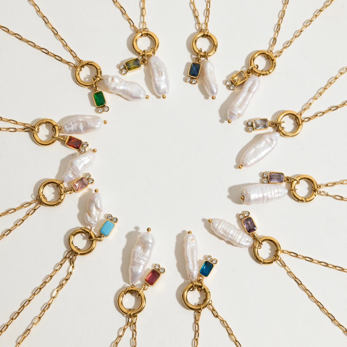 Experience the elegance and versatility of this beautiful layered necklace set, crafted from durable stainless steel with a PVD gold finish. Designed for modern women who appreciate subtle sophistication, this jewelry combines minimalist style with eye-catching geometric details. The set features two elongated oval link chains, each adorned with delicate pendants: a white freshwater pearl with natural irregularities and ridges, paired with vibrant zircon stones in deep red and deep blue. Perfect for parties or everyday wear, these necklaces add a trendy yet refined touch to your look. Lightweight at 15 grams and built with hypoallergenic stainless steel, they are suitable for all skin types. Elevate your jewelry collection today with this must-have accessory.