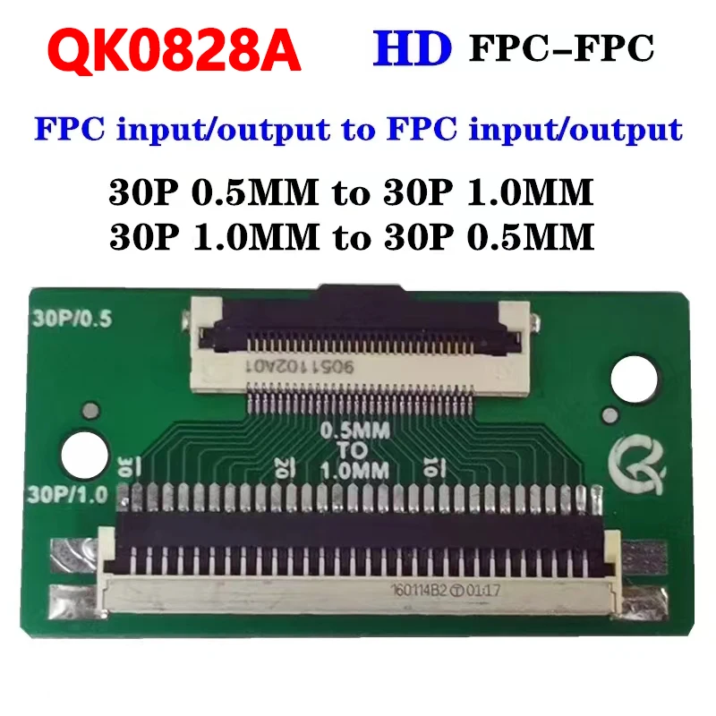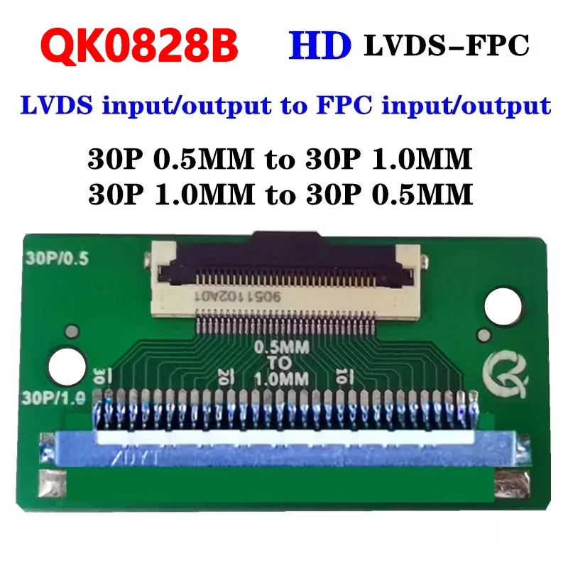 - QK0828A converts 30-pin 0.5mm pitch to 30-pin 1.0mm pitch, enabling compatibility across various LCD display panels for TCL, HKC, and other brands.