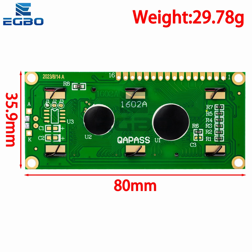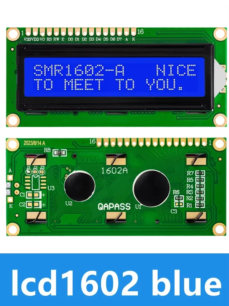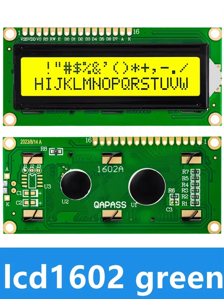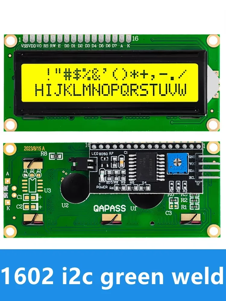 Experience the versatility and sleek design of this LCD1602+I2C module, perfect for enhancing your embedded projects. Featuring a 16×2 character display with a resolution of 128×64 pixels, it provides clear, crisp information displays. The module boasts two vibrant screen options—calming blue and energetic green backgrounds—that add visual appeal and allow you to select the most suitable color for your project environment. Designed with a compact, modern aesthetic, it integrates seamlessly with your circuitry through a PCF8574 I2C interface, making installation straightforward. Its customizable and semi-custom options cater to various technical needs, ensuring flexibility in your application. This module’s organized layout, with surface-mounted components and clear silkscreen markings, reflects quality craftsmanship, ready to elevate your device’s interface.