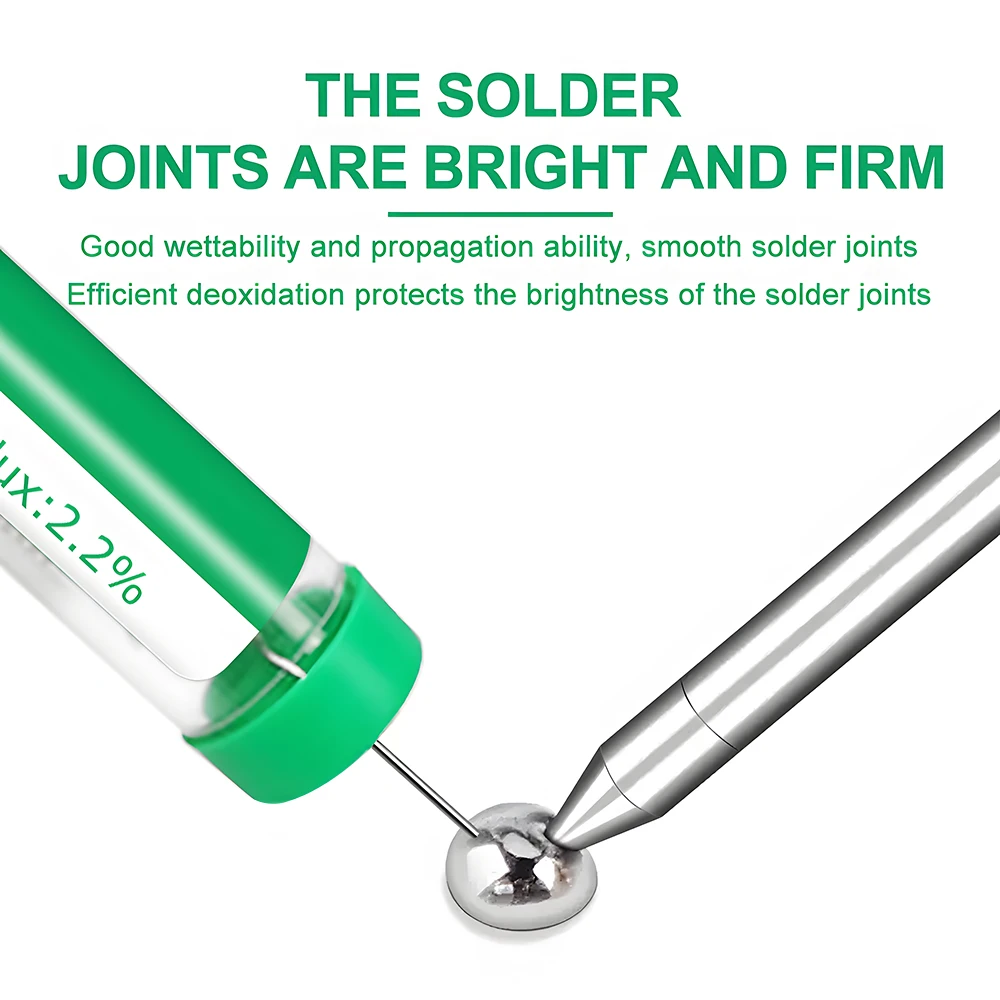 - Bright yellow-green flux inside, visible through clear containers, aiding in controlled, accurate application for PCB and IC soldering.