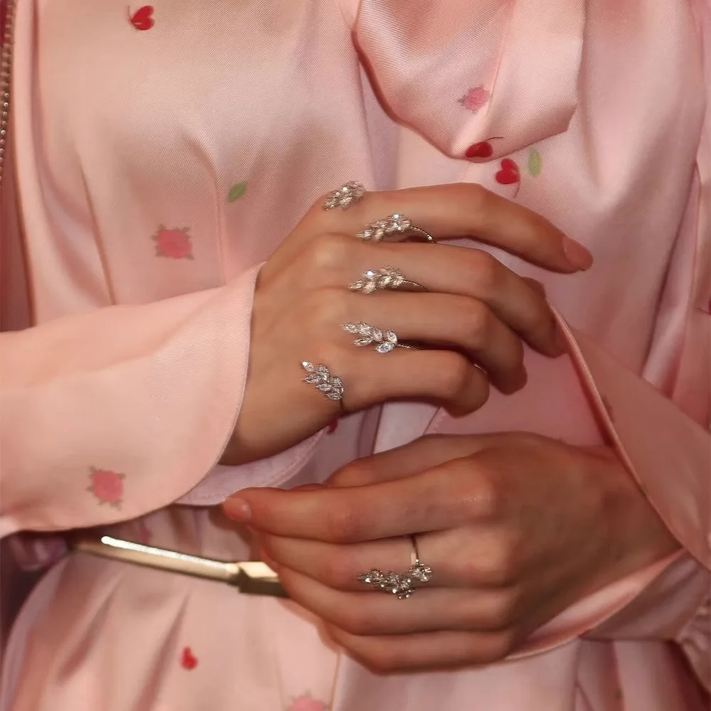 - Matching ring with a cluster of tiny, shimmering leaves, echoing the natural theme and adding a delicate finishing touch to your ensemble.