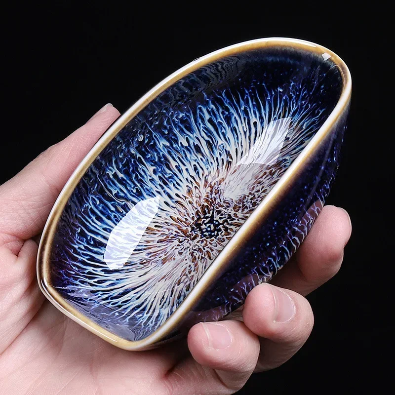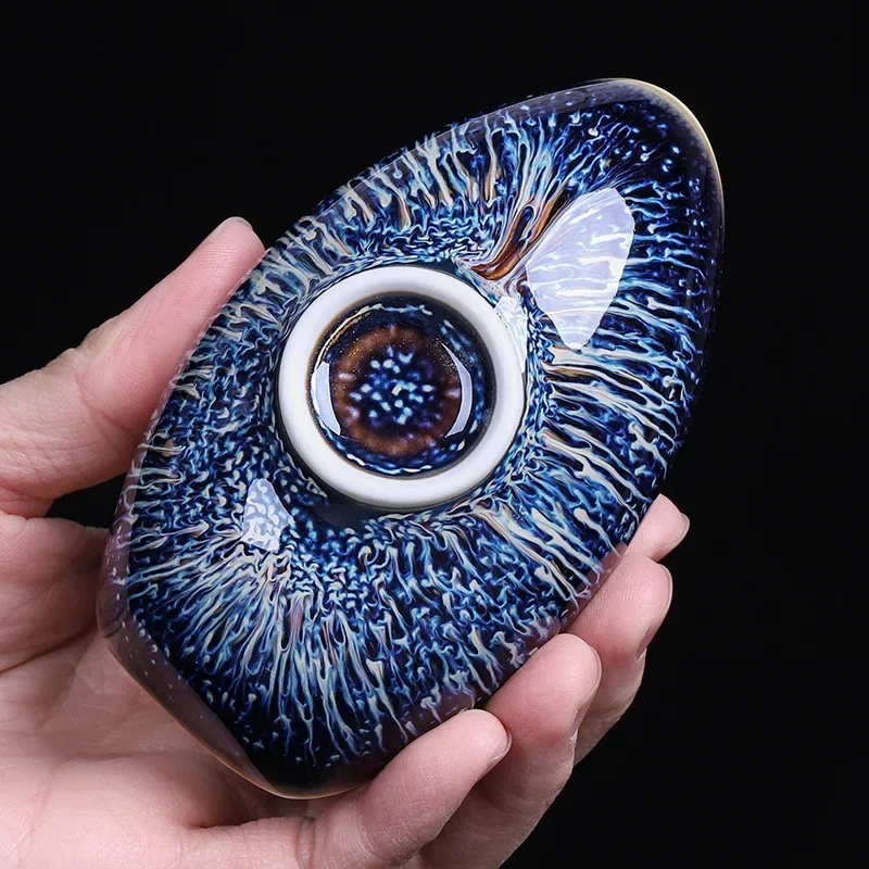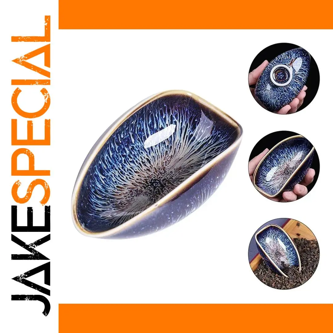Imagine yourself effortlessly preparing the perfect cup with this beautifully crafted leaf-shaped tea scoop. Made from high-quality porcelain, it features a vibrant deep blue glaze accented with white veins, mimicking a real leaf's delicate texture. Its glossy surface adds a refined touch, while the rounded edges and beige trim give it an elegant finish. Lightweight and handcrafted, each scoop provides a unique artisanal charm, making your tea preparation feel special and authentic. Its versatile size of approximately 11.2 x 6.6 x 4.5 centimeters (or 9.8 x 7.5 x 4 centimeters) allows for precise measurement of loose tea, matcha, or coffee, helping you achieve the perfect brew every time. This accessory is ideal for collectors and tea enthusiasts seeking functional beauty.