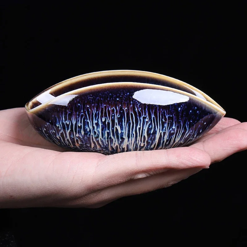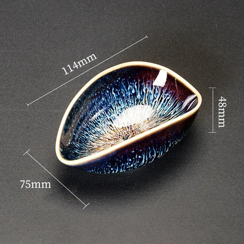 - Designed in a beautiful leaf shape with a glossy, deep blue glaze highlighted by white veins, inspired by natural leaf textures for a unique aesthetic appeal.