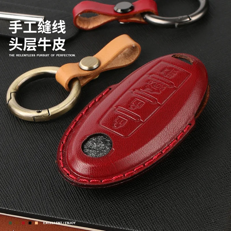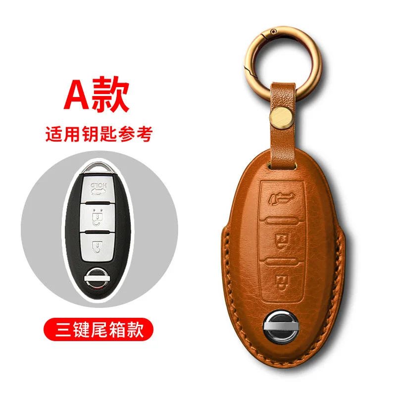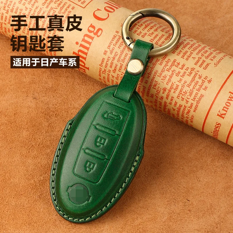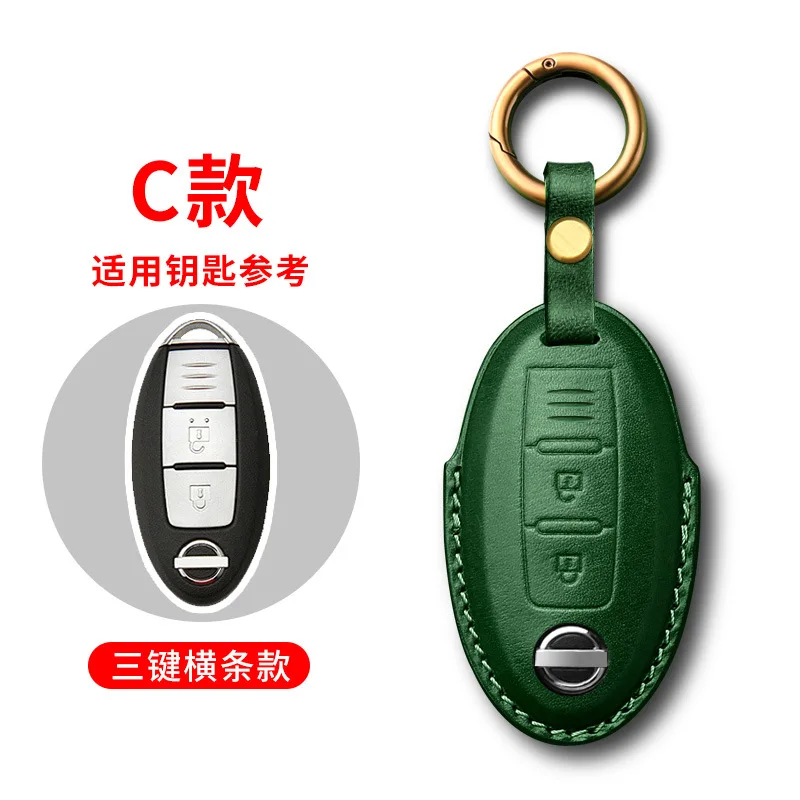 Elevate your automotive experience with this luxurious leather key cover, designed specifically for Nissan models including SYLPHY, TEANA, QASHQAI, X-TRAIL, and ARIYA. Available in a variety of vibrant colors—such as eye-catching green and rich brown—this key cover seamlessly blends style and functionality. Crafted from high-quality leather, it contours perfectly around your 3 to 4 button car key while offering a smooth texture and a durable finish. The embossed button areas enhance usability, ensuring that you can easily access essential functions while showcasing your unique style. Imagine the ease of finding your keys while making a statement every time you reach for them.
