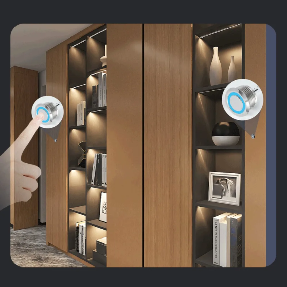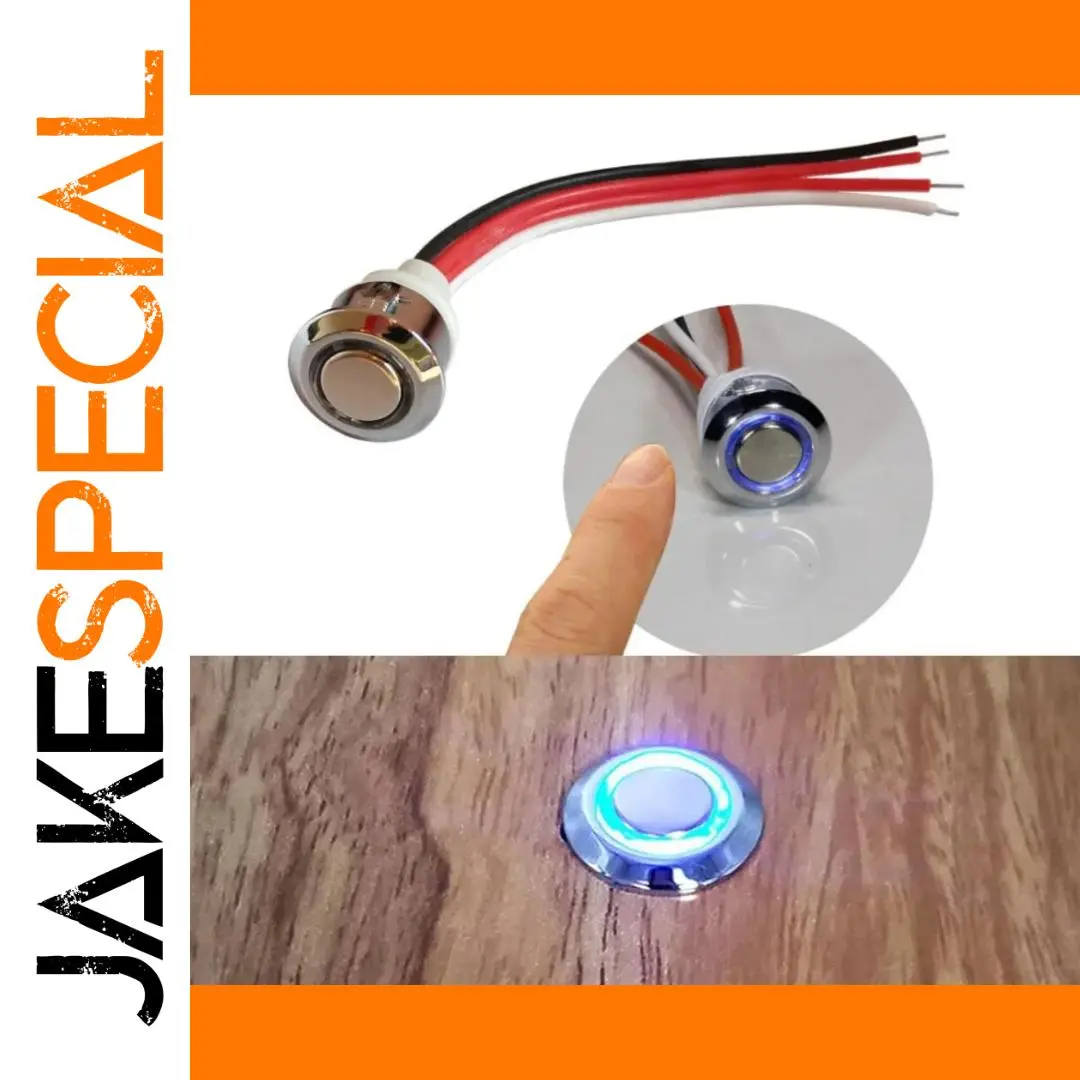Experience seamless lighting control with this sleek LED dimmer switch, featuring a chrome-like metallic finish and a 18.5mm diameter touch-sensitive surface illuminated by a vibrant blue LED ring. With a compact 8mm thickness and a 17mm mounting hole, this device operates on 5V to 24V DC with a maximum load of 72W and supports up to 3A current. Equipped with a temperature compensation chip for stable performance across -20°C to +50°C, it offers touch on/off and dimming functions without limits, making it ideal for LED strips, cabinet lighting, ventilation fans, and automation systems. Durable, certified, and easy to install, it elevates any modern lighting setup.
