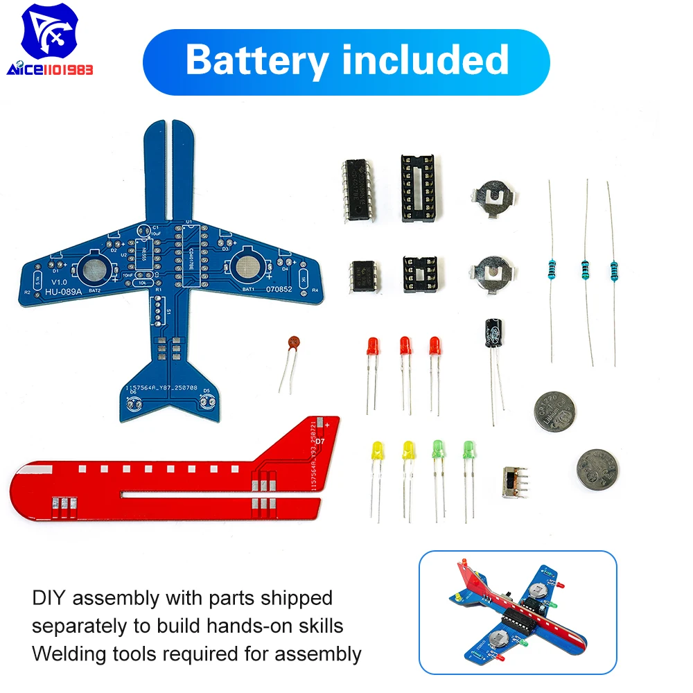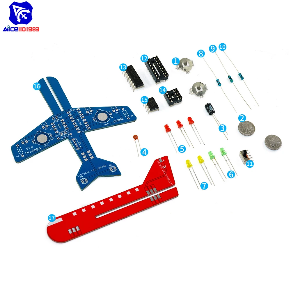 - Includes a classic circuit using NE555 and CD4017 chips, supporting a mesmerizing three-color LED flowing light effect to mimic aircraft lighting dynamics.