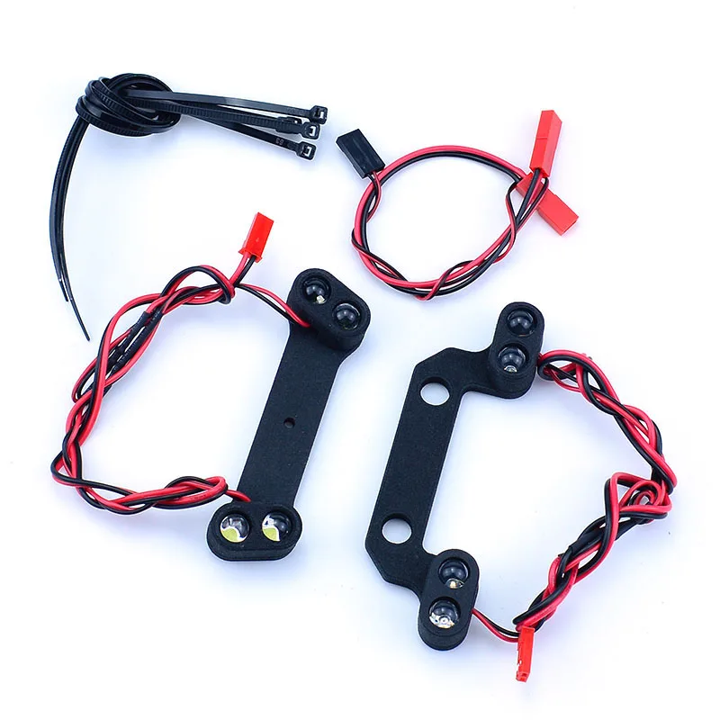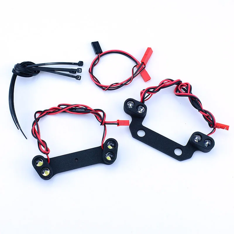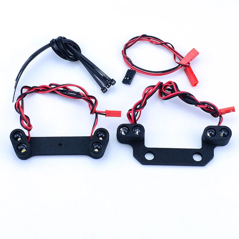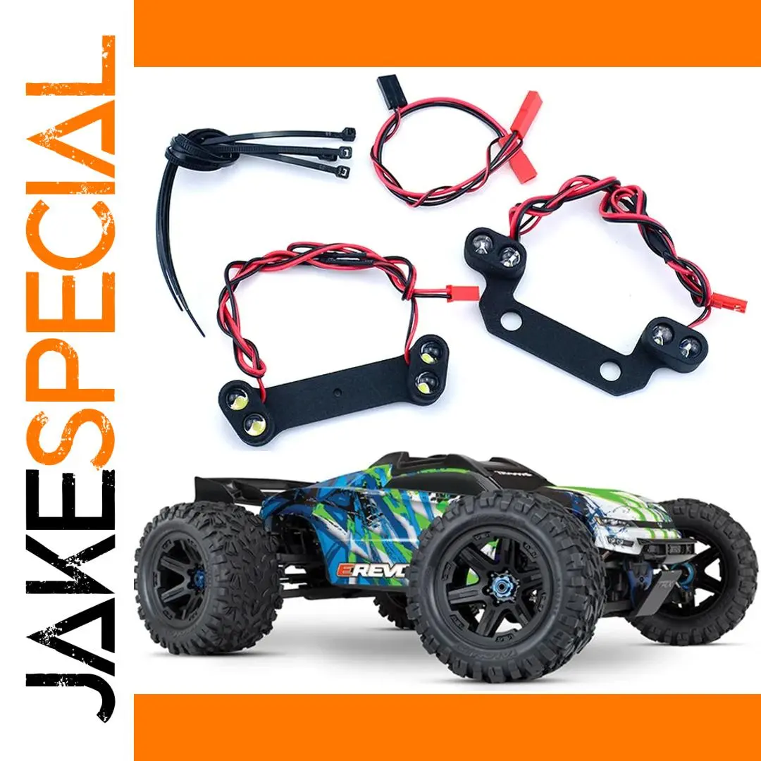 Enhance your 1/10 TRAXXAS RC E-Revo 2.0 with this sleek LED front and rear lighting system, weighing only 82 grams and constructed from durable plastic and electronic components. Designed for seamless compatibility with 1/8 and 1/10 scale models, it features embedded LED bulbs on matte black brackets with multiple attachment points for a clean, high-tech look. The flexible wiring in red and black contrast subtly against the brackets, adding a modern touch to your rugged monster truck. Perfect for upgrading both performance and visual appeal, this assembled set is ideal for vehicle enthusiasts aged 14 and above seeking durability, functionality, and a striking off-road aesthetic.