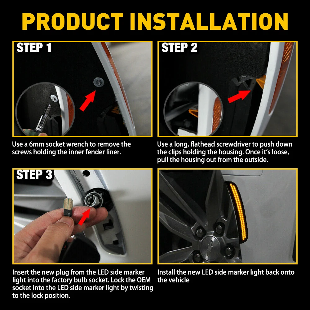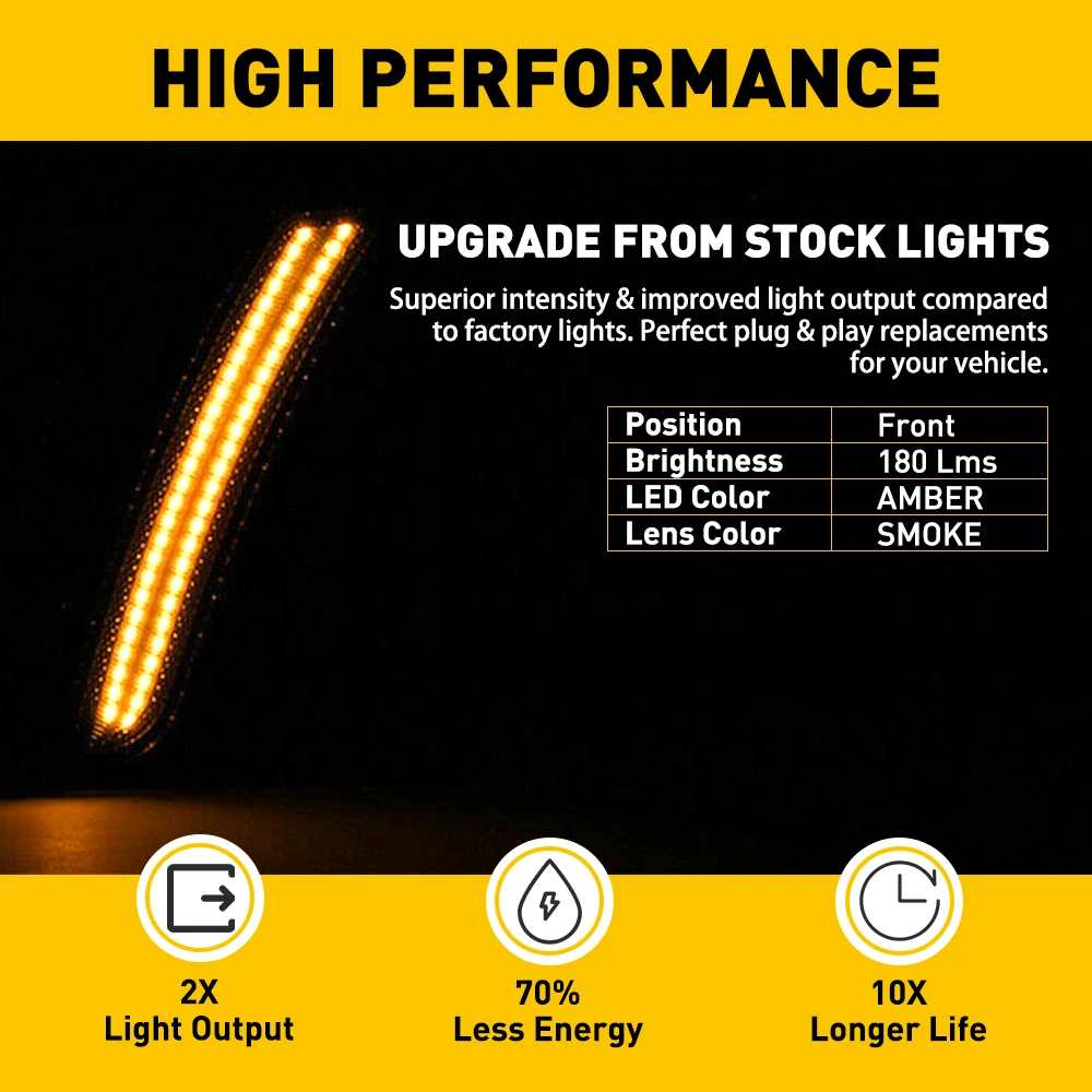 Enhance your Dodge Charger's appearance and safety now by choosing these premium LED side marker lights. Their modern design, durability, and high illumination make them an excellent upgrade. Imagine your vehicle’s enhanced visibility during night drives or foggy conditions, all while adding a sleek, refined look. These lights are simple to install and built to last, giving you peace of mind. Don’t wait to elevate your car’s aesthetic and safety features—order today and experience the perfect combination of style, functionality, and reliability tailored specifically for your Dodge Charger.