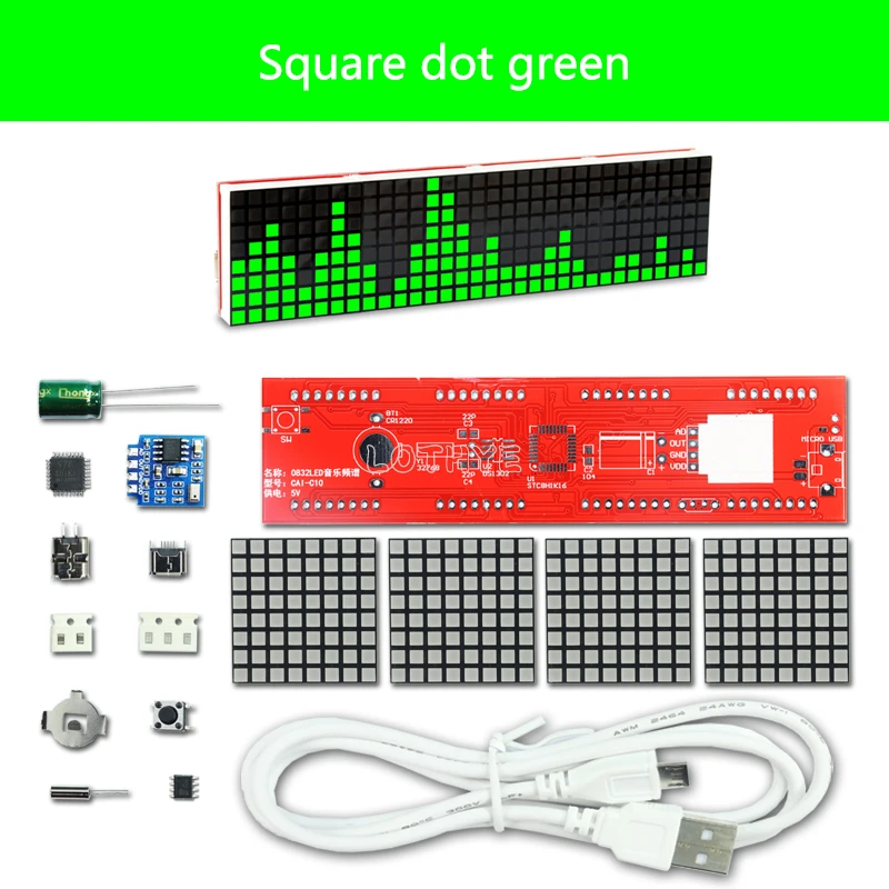 - Bright, uniform square LEDs arranged in vertical columns to simulate real-time spectrum analysis, available in green and red colors.