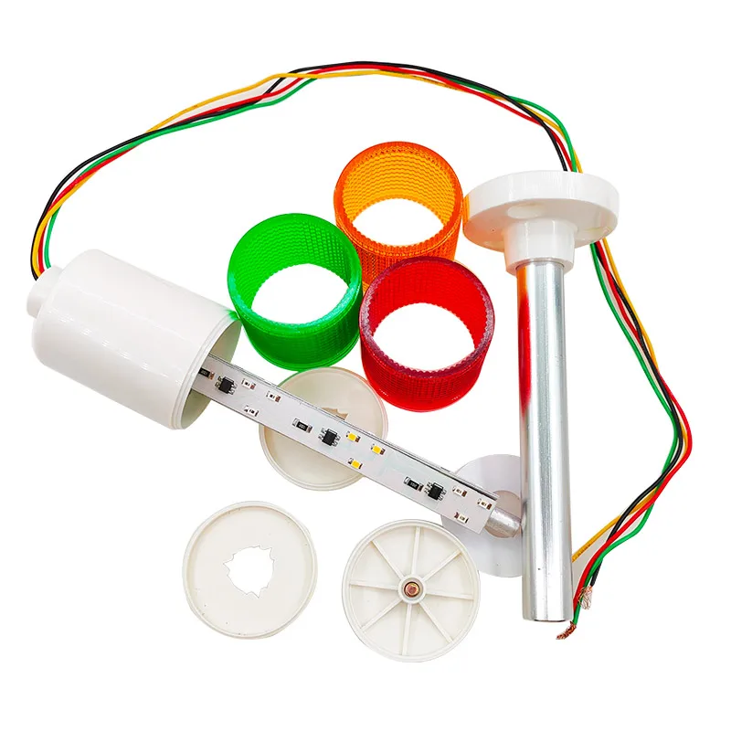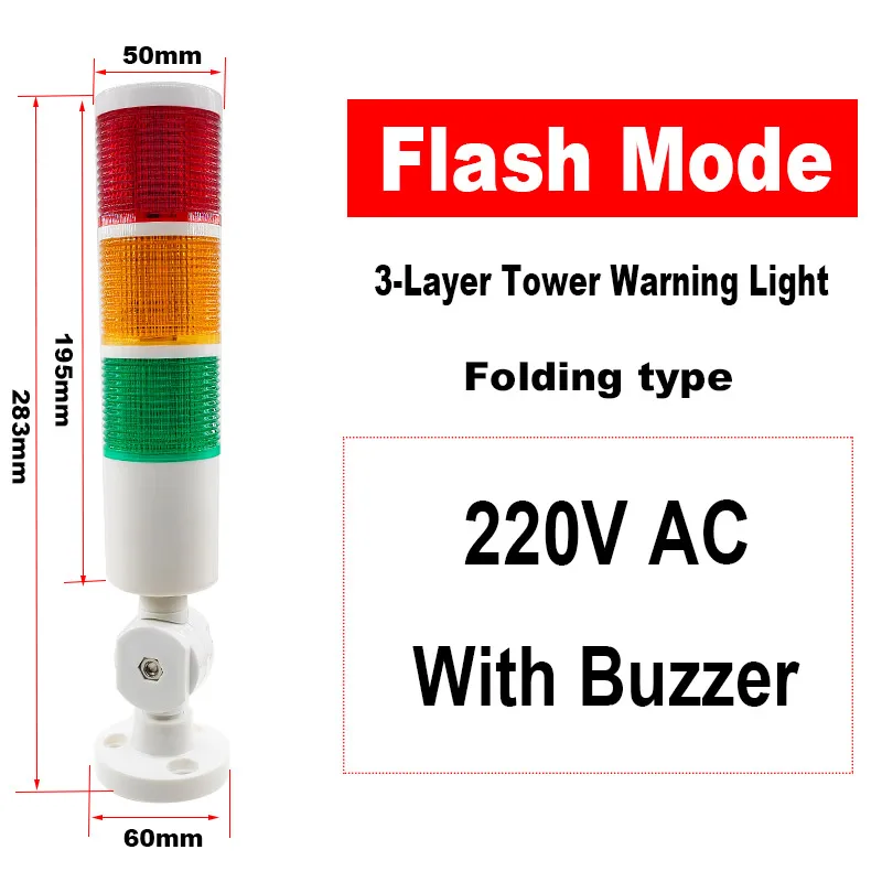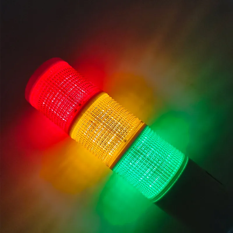 Imagine elevating your industrial setup with this sleek, vibrant LED tower signal light. Designed with a 50mm diameter and a modern cylindrical shape, it features three colorful, textured lenses—red at the top, amber in the middle, and green at the bottom—that diffuse light evenly for clear signaling. With options for steady or flashing modes, as well as integrated sound alerts, this versatile indicator provides enhanced safety and communication on any equipment or facility. Suitable for both 12-24V and 220V power supplies, it offers reliable performance, helping you monitor processes effortlessly. Its durable construction and clean design make it an ideal addition for demanding environments, providing both visual and audible indications with confidence and style.
