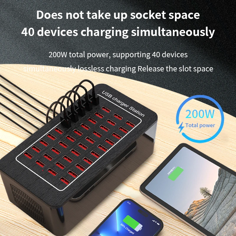 Transform your charging experience with the Leebote 150W Multi-Port USB Charging Station. Designed for efficiency and convenience, this sleek black charging hub accommodates multiple devices simultaneously, making it perfect for busy households or offices. With a maximum output of 150W and an output voltage of 5V at 2.4A, you can charge everything from smartphones to tablets without compromise. The stylish design, complete with red-accented USB ports, complements any desktop while ensuring that your devices are powered up without the clutter of multiple chargers. Feel the ease of charging multiple devices at once and visualizing a more organized workspace.