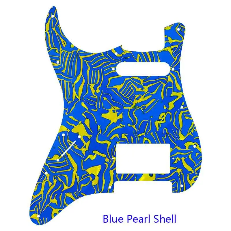 Enhance your guitar’s performance and aesthetic with this high-quality left-handed Fender Stratocaster pickguard, designed for US and Mexico models with 11 screw holes compatible with standard Start St HS PAF humbuckers. Crafted from durable PVC and composite materials, it features a variety of stylish finishes including 4Ply Red Pearl, Parchment Pearl, Blue Pearl, Brown Pearl Shell, and Cream Yellow, among others. Weighing approximately 200 grams, it includes a real aluminum foil shield for noise reduction, a protective film to prevent scratches, and 11 mounting screws for easy installation. Perfect for customizing your guitar with a unique, vibrant look while ensuring optimal sound quality.