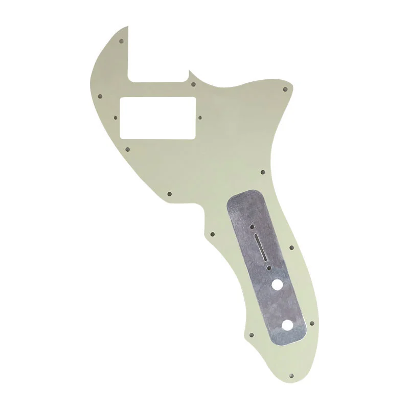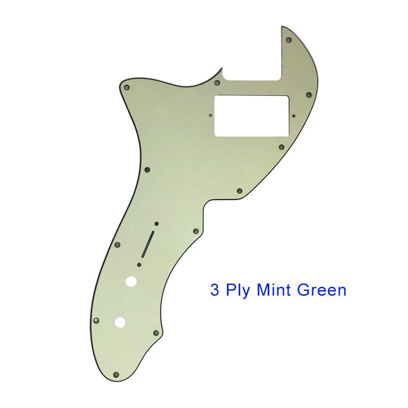 Imagine giving your US Thinline Tele 69 a fresh new look with this stunning custom pickguard. Perfectly crafted for left-handed players, it combines retro style with modern protection. The vibrant mint green color adds a touch of vintage charm while the smooth, contoured shape offers ergonomic comfort. Its glossy finish enhances its sleek appearance, making your guitar truly stand out. Made from high-quality PVC and composite materials, this pickguard is durable and resistant to scratches, ensuring long-lasting beauty. Equipped with an anti-scratch layer and a real aluminum foil shield, it minimizes noise for a cleaner sound. Its carefully designed cutouts perfectly accommodate PAF Humbucker pickups and other components, offering a secure fit for easy installation. Whether replacing or customizing, this pickguard elevates your guitar's aesthetic and performance at once.