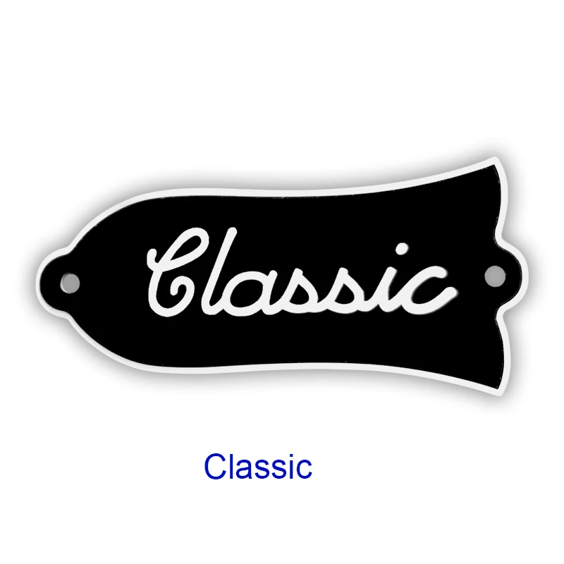 Enhance your left-handed Gibson Les Paul Standard guitar with this Truss Rod Cover Plate, model number Gib LP. Crafted from durable 2-ply black material, it features a sleek, glossy finish and a protective film that ensures a pristine appearance until installation. The elegantly shaped plate includes two screw holes for secure attachment and comes with contrasting white inscriptions like “Classic,” “Challenger,” “Standard,” and “Traditional,” catering to various models. Ideal for replacements or DIY projects, this versatile component is also available in multiple colors and customization options for a personalized touch.