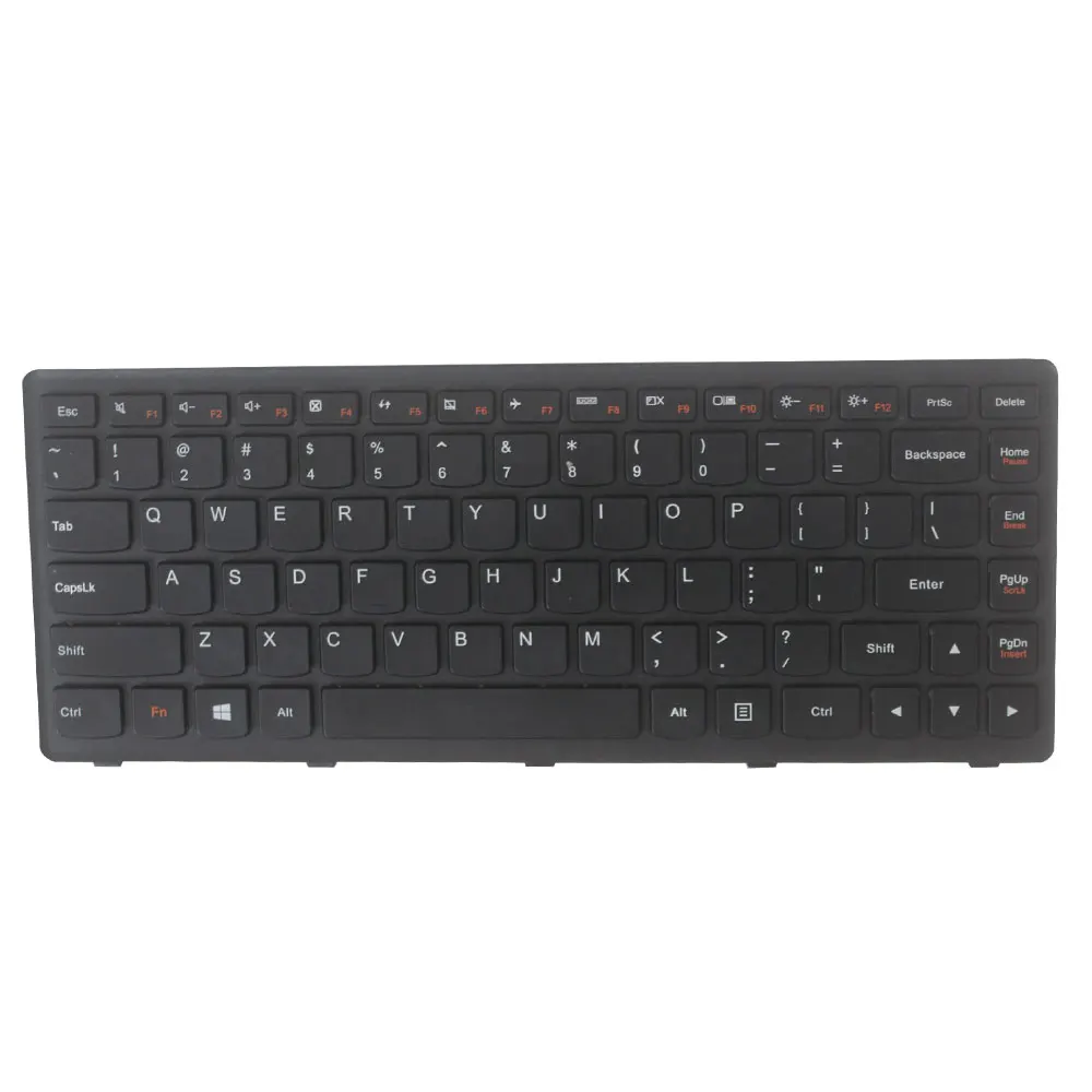 Experience the joy of seamless typing with this Lenovo-compatible laptop keyboard, designed for specific models including G400S, G405S, S410p, G400AS, G410s, Z410, and FLEX14A. Crafted in a sleek black finish with a smooth matte surface, it minimizes glare, offering a comfortable typing experience. The US standard layout showcases flat keycaps with slightly rounded edges and clear white lettering for enhanced visibility. A striking red-highlighted “Fn” key makes it easy to navigate your commands. With a solid metallic backplate, this keyboard combines a modern aesthetic with robust functionality, ensuring your Lenovo device performs at its best.