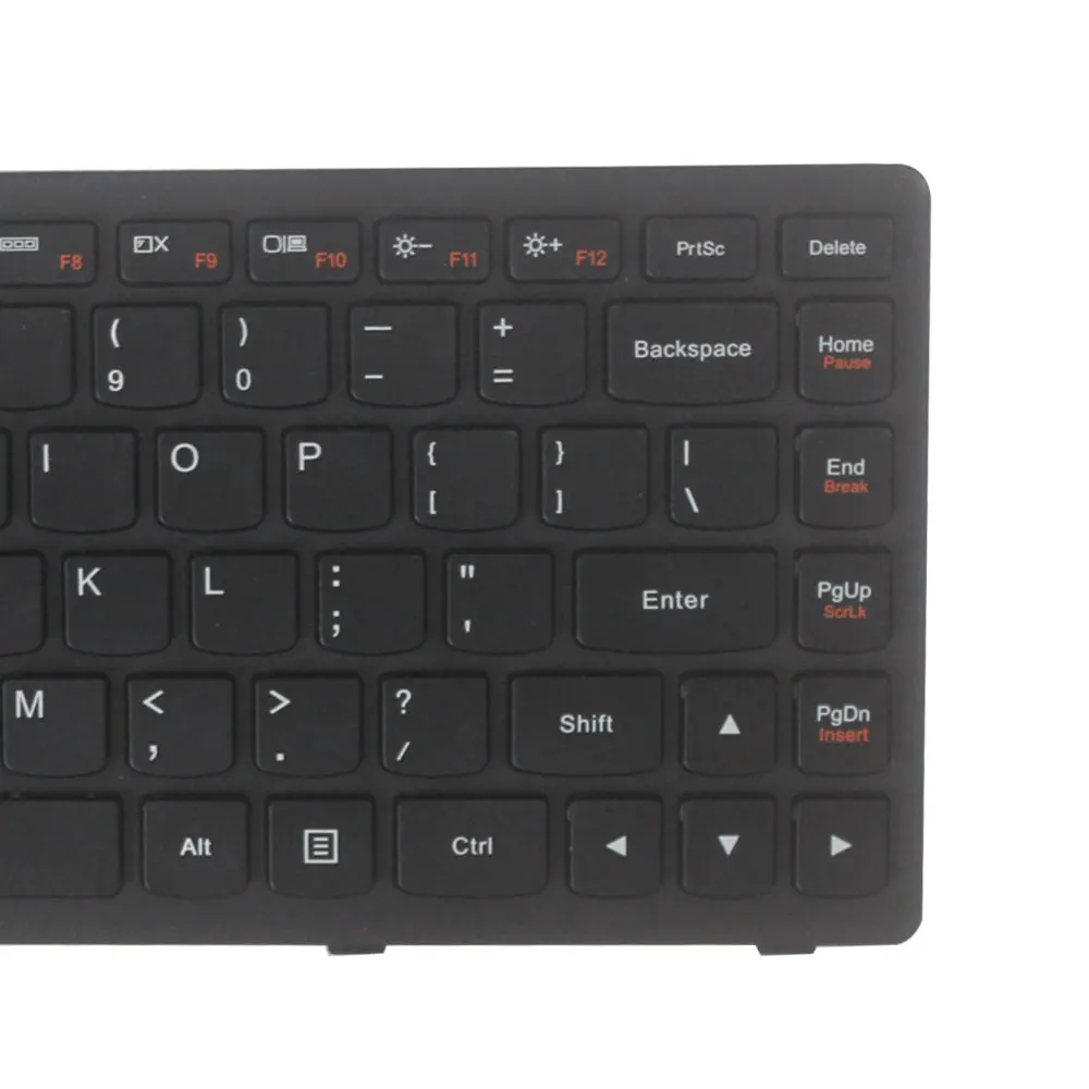 Picture yourself effortlessly replacing your Lenovo laptop's keyboard with this sleek, black, and matte-finish model designed specifically for G400S, G405S, S410p, G400AS, G410s, Z410, and FLEX14A/FLEX14g/FLEX14D. Its low-profile, slightly concave keys ensure a comfortable typing experience, while the bold red symbols on function keys add a modern, energetic touch. The organized full-sized layout features essential keys like ESC, Delete, navigation keys, and the Windows key, seamlessly blending function and style. The sturdy metallic backplate enhances durability with its industrial-inspired flat design and visible mounting screws. Whether you’re restoring your laptop’s performance or aesthetics, this replacement keyboard offers both reliability and visual appeal, making your device look and feel new again.