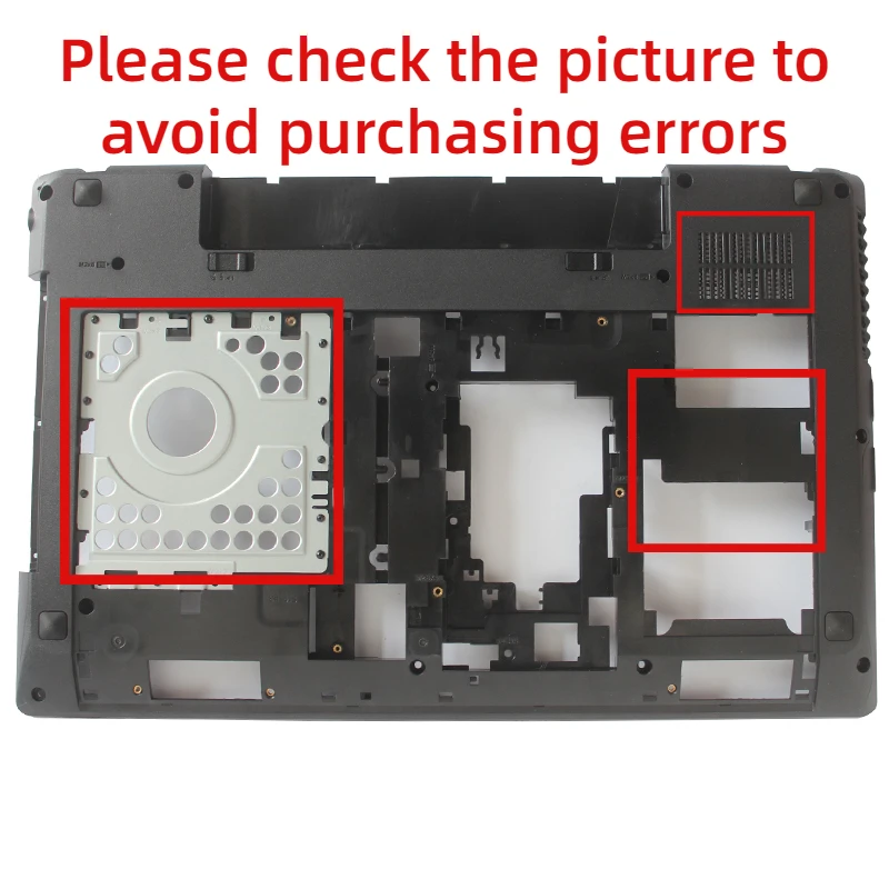 Enhance your Lenovo G580 or G585 with the AP0N2000100 laptop bottom case cover. This sleek and modern design features a dark-colored upper palm rest with a matte finish, and a compatible lower case showcasing various cutouts for components like hard drives and cooling fans, ensuring optimal functionality. Choose from multiple color options: C shell, C and D shell, or D shell. Designed for perfect compatibility, this bottom cover provides reliable structural integrity for your device. Enjoy peace of mind with a three-month warranty for keyboard and fan components, while noting that the shell and screen hinge are considered fragile.