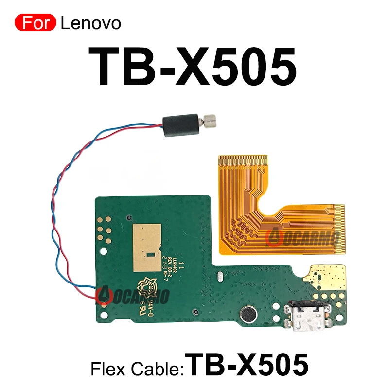 Experience seamless connectivity with this original quality USB charging port dock board, specially designed for Lenovo tablets like TB-X306, TB-X505, and TB-X606. Crafted with precision, the rectangular bar-shaped component features a vibrant green PCB with meticulously mounted electronic parts, ensuring reliable performance. The sturdy metallic shield offers enhanced durability, while the bright orange flexible cable, shaped in an efficient L-form, allows flexible connections even in tight spaces. The small black cylindrical element with colorful wires adds to its technical sophistication. Perfect for replacing or upgrading your device’s charging dock, this part ensures fast, stable charging and data transfer, giving you peace of mind and long-lasting functionality for your tablet.