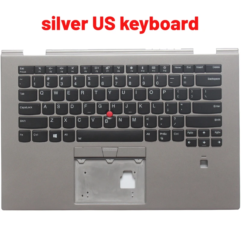 Elevate your laptop's style with this Lenovo ThinkPad X1 Yoga 3rd Gen 2018 palmrest upper cover case. Available in sleek black and glossy silver, these covers enhance the aesthetic appeal of your device while ensuring functional elegance. The full QWERTY backlit keyboard offers a comfortable typing experience with clear white lettering against the contrasting colors. With a prominent red TrackPoint and seamlessly integrated touchpad, both covers provide not only a striking look but also practical usability. Perfect for your Lenovo ThinkPad X1 Yoga, these covers ooze sophistication and newness, making your device stand out.