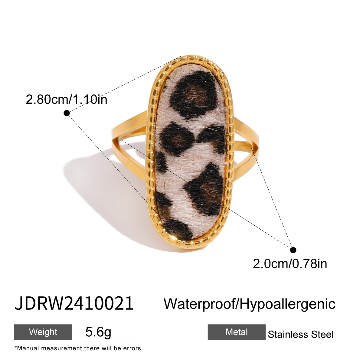 Imagine adding a bold statement to your outfit with this stunning leopard print jewelry set, expertly crafted from stainless steel with durable PVD gold coating. Each piece — earrings, a ring, a bracelet, and a necklace — features a chic animal print motif in black and brown spots on a white background. The cohesive design enhances your style effortlessly, blending trendy fashion with luxurious gold-tone accents. The set offers a lightweight feel, completing any look for parties or special occasions. Its waterproof and scratch-resistant properties ensure long-lasting beauty, while the nickel, lead, and cadmium-free materials guarantee safety and comfort. Elevate your jewelry collection with this eye-catching, versatile set designed to impress effortlessly.