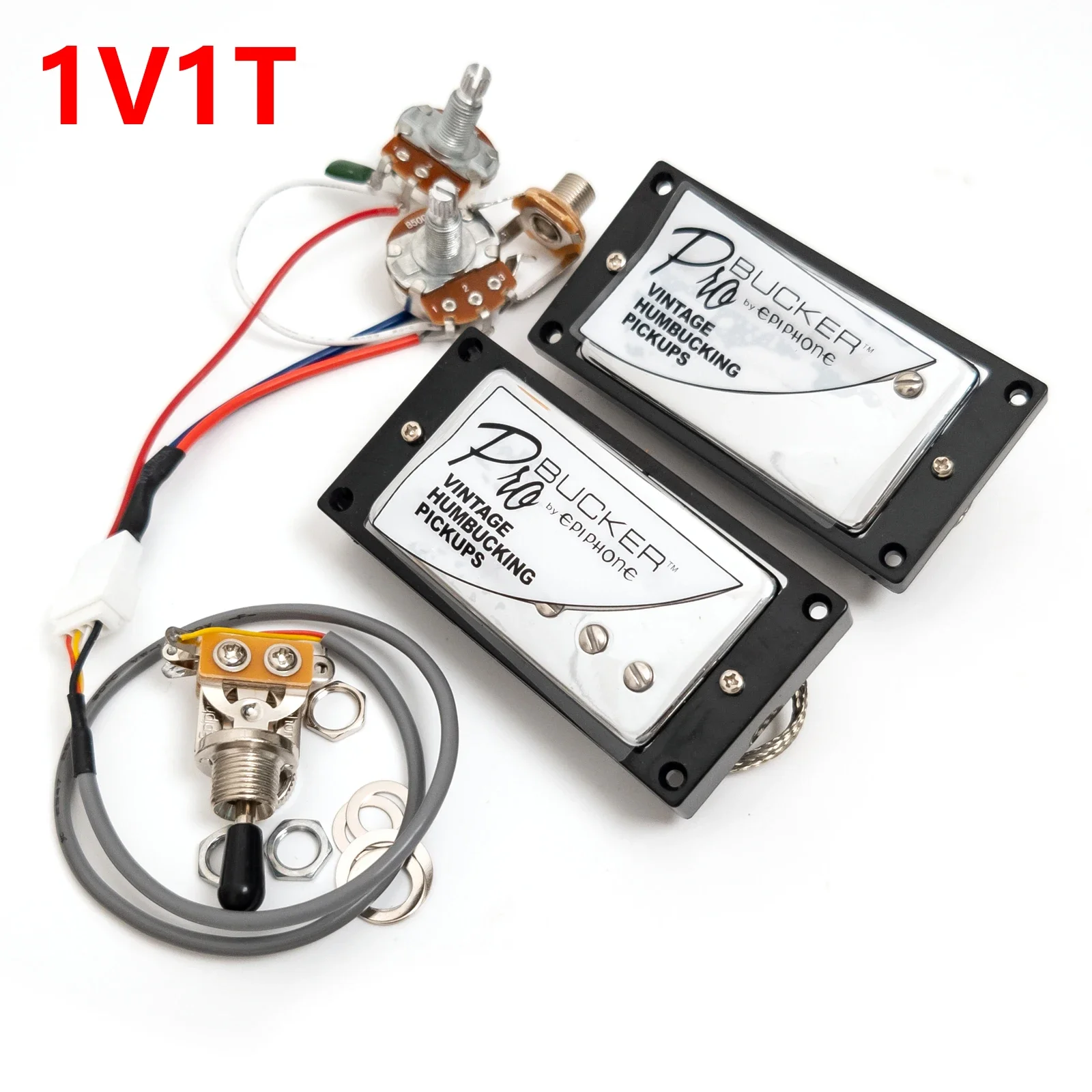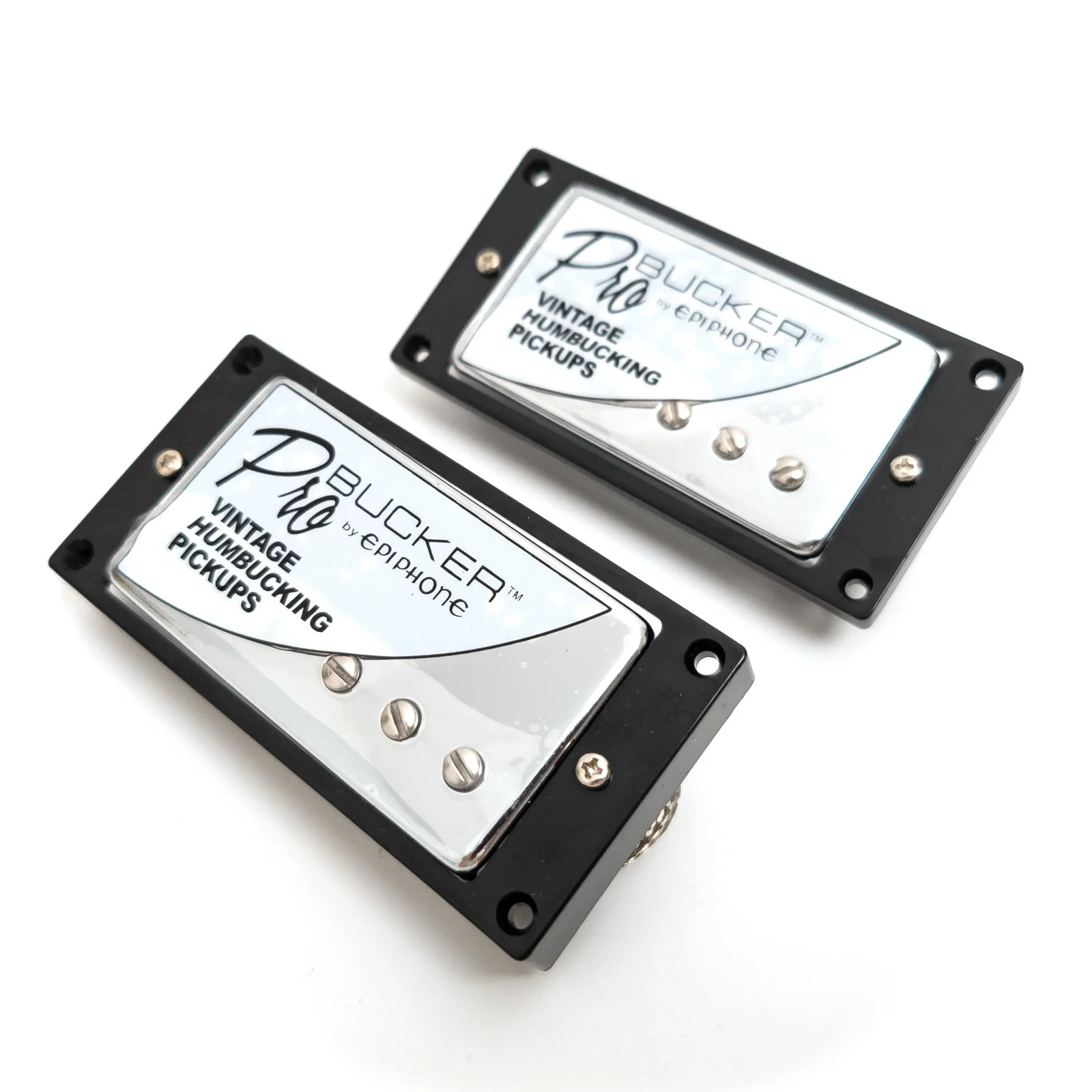 Enhance your guitar’s tone with this premium set of Alnico V humbucker pickups, featuring 7.5KΩ resistance for the neck and 15KΩ for the bridge, wax-potted to reduce feedback and deliver optimal sound clarity. The sleek rectangular design is encased in black plastic frames with polished chrome covers, reflecting light for a modern look. The pickups have 50mm pole spacing, perfect for LP-style guitars, and come with 2-conductor shielded wiring for reliable signal transfer. Optional prewired harness kits include durable shielded wiring, ALPHA pots, toggle switches, and jacks for seamless installation. Elevate your playing with these high-quality, versatile pickups.