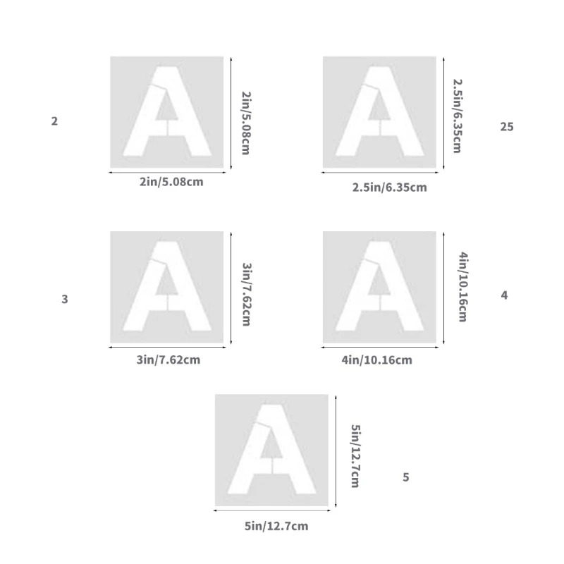 - Sizes range from approximately 2×2″ to 5×5″, catering to various project sizes, with clear, bold characters for easy visibility and precision.