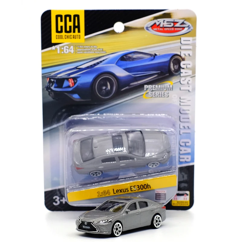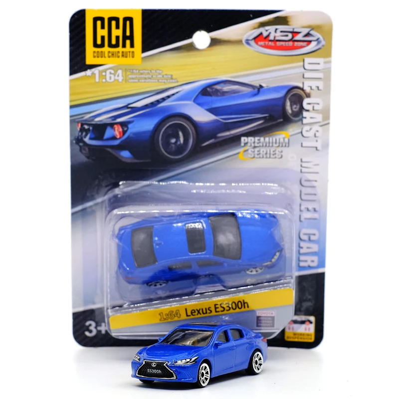 Experience the sleek elegance of the Lexus ES300H with this detailed 1:64 scale diecast model, approximately 7 cm long. Crafted from alloy and plastic, it features four-wheel shock absorption and sliding capabilities, providing both durability and realistic movement. Available in vibrant blue and sophisticated gray, this collectible model showcases authentic design elements such as a streamlined body, stylized headlights, and multi-spoke white wheels that beautifully contrast with the body color. Perfect for adult collectors and enthusiasts, it is packaged in a colorful box, enhancing its display appeal. Add this realistic, high-quality model to your collection and enjoy a striking representation of the luxury sedan.