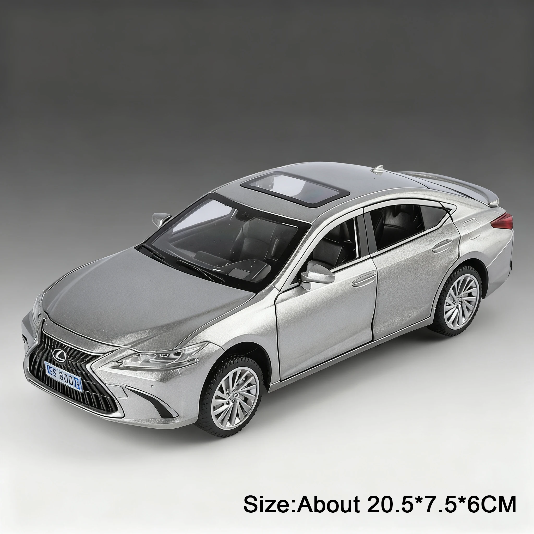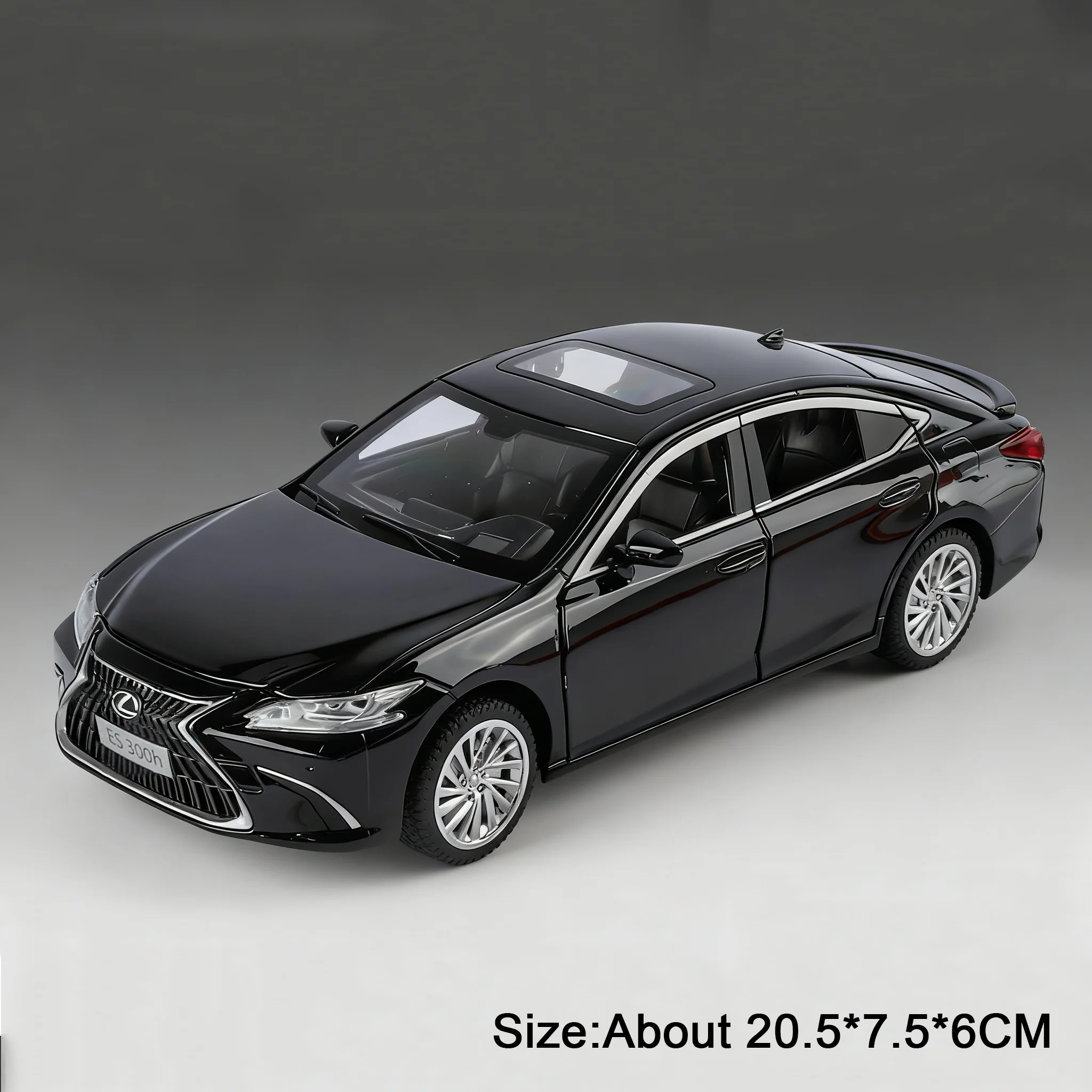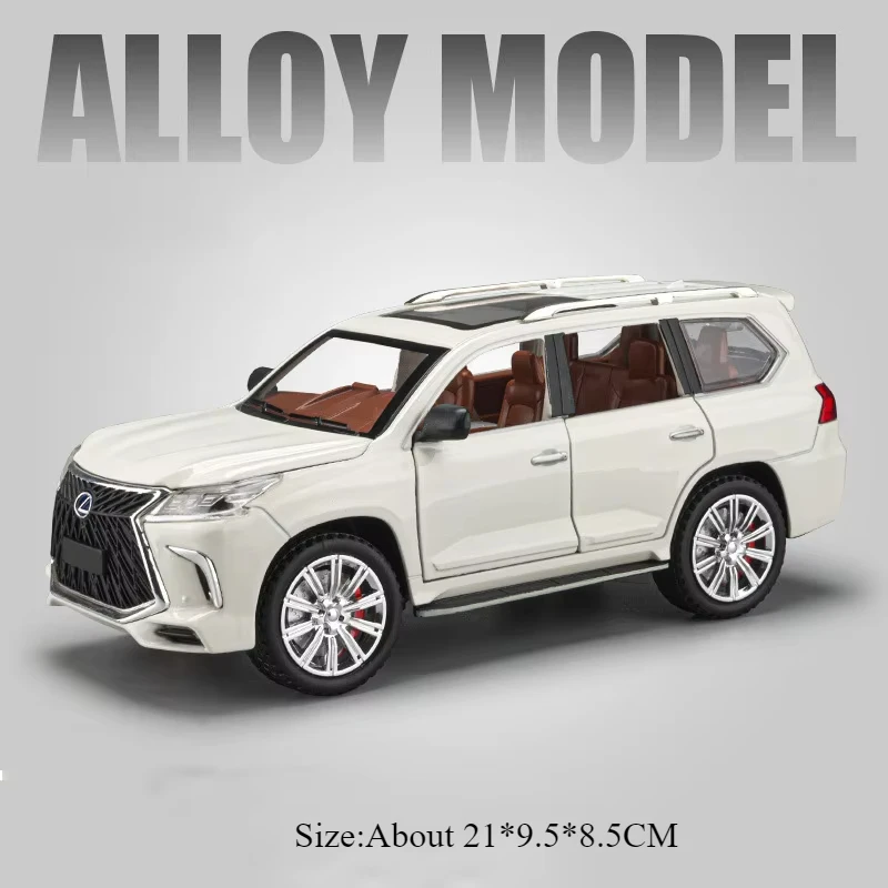 This highly detailed 1:24 scale diecast alloy car model showcases a sleek and modern design with a durable metal body, plastic chassis, and rubber tires, measuring approximately 20.5 x 7.5 x 6 cm for the ES300H and 21 x 9.5 x 8.5 cm for the LX570. Available in white, black, silvery, red, and blue, it features functional details such as openable doors, pull-back mechanism, built-in lights, and music. Perfect for collectors and enthusiasts, this model combines realism with playability, making it an ideal gift or display piece for those who appreciate automotive craftsmanship. Batteries are included for immediate use.