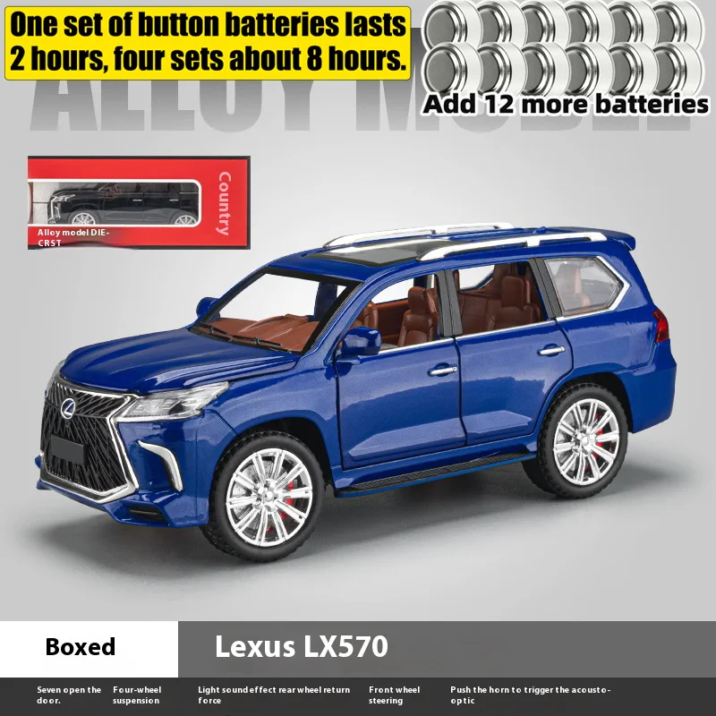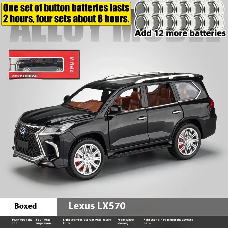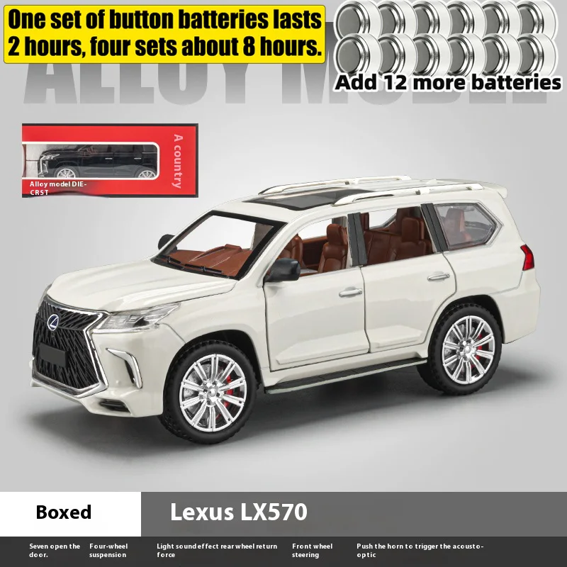 - 1:24 scale accurately replicates the Lexus LX570 dimensions.
