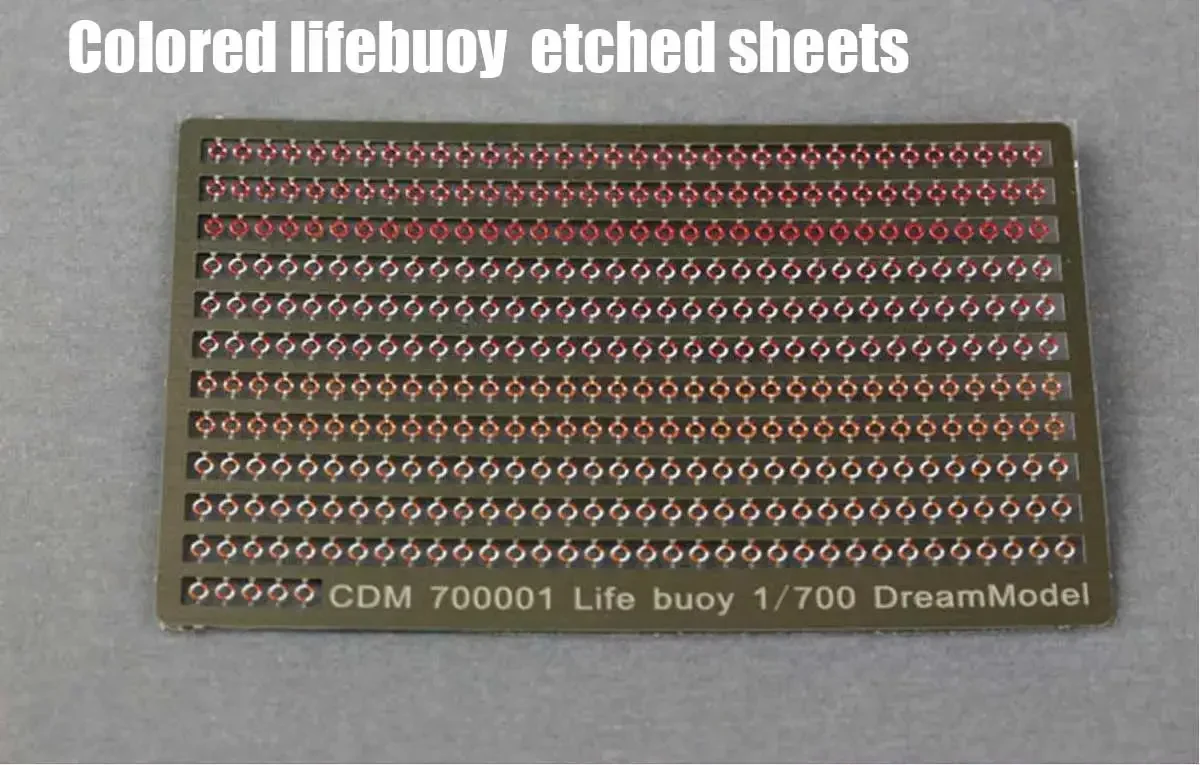 Imagine elevating the realism of your scale model with this meticulously crafted metal etching sheet from Dream Model. Designed specifically for 1/700 and 1/350 scale ships, this accessory adds intricate detail to your masterpiece. The sleek, silver finish contrasts beautifully with copper-colored rings, creating a striking visual effect that captures attention. Each ring and cutout is precisely etched, ensuring a uniform, professional appearance. Easy to attach with instant adhesive, this durable component seamlessly integrates into your project. Whether you're restoring a vintage vessel or building a detailed replica, this lifebuoy sheet helps bring your model to life with authentic, eye-catching detailing. Elevate your craftsmanship today with this essential accessory.