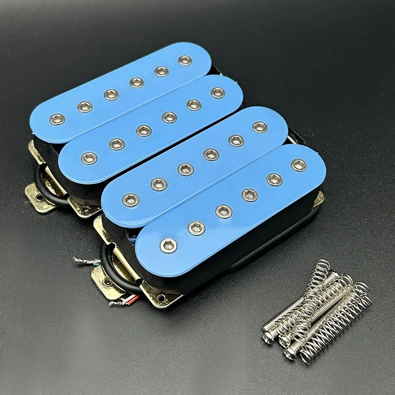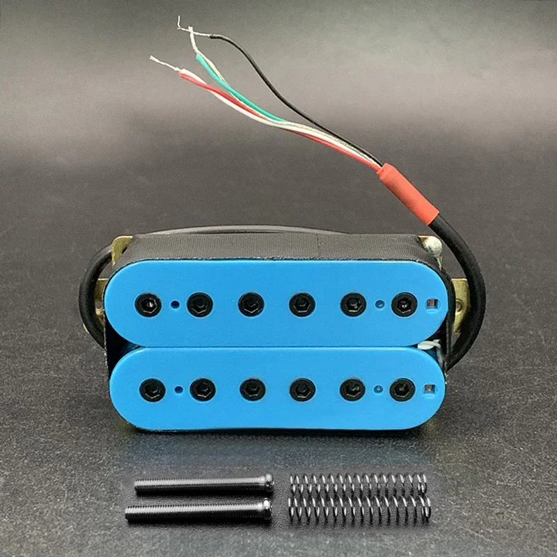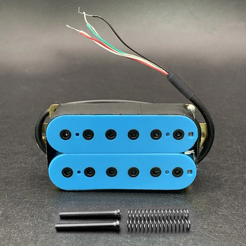 Experience a blend of sleek design and powerful sound with this this light blue electric guitar humbucker. Crafted for performance, it features a dual coil setup with 12 adjustable hex screws, allowing precision tuning for your unique tone. The rectangular shape with rounded edges enhances its modern aesthetic, while the light blue finish creates a striking visual contrast against your guitar body. Durable and reliable, this pickup is built with high-quality ceramic bar magnets and plastic bobbins, making it suitable for both professional and passionate guitarists seeking versatility and clarity in their sound. With coil splitting capability, you can easily switch from thick humbucking tones to brighter, single-coil sounds, opening creative possibilities. This pickup is an essential upgrade for your 6-string electric guitar setup.