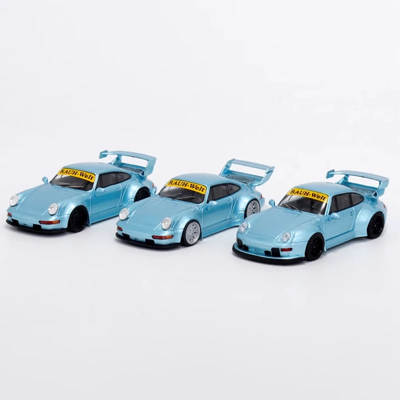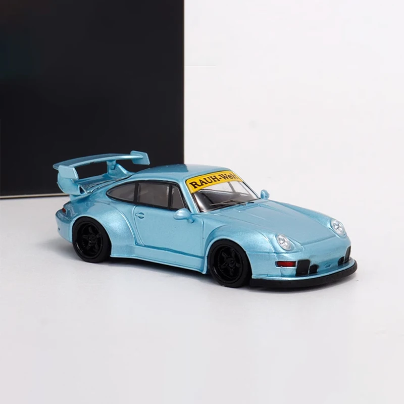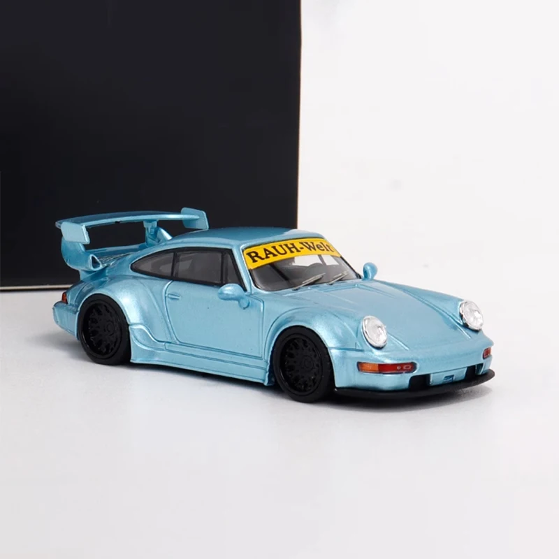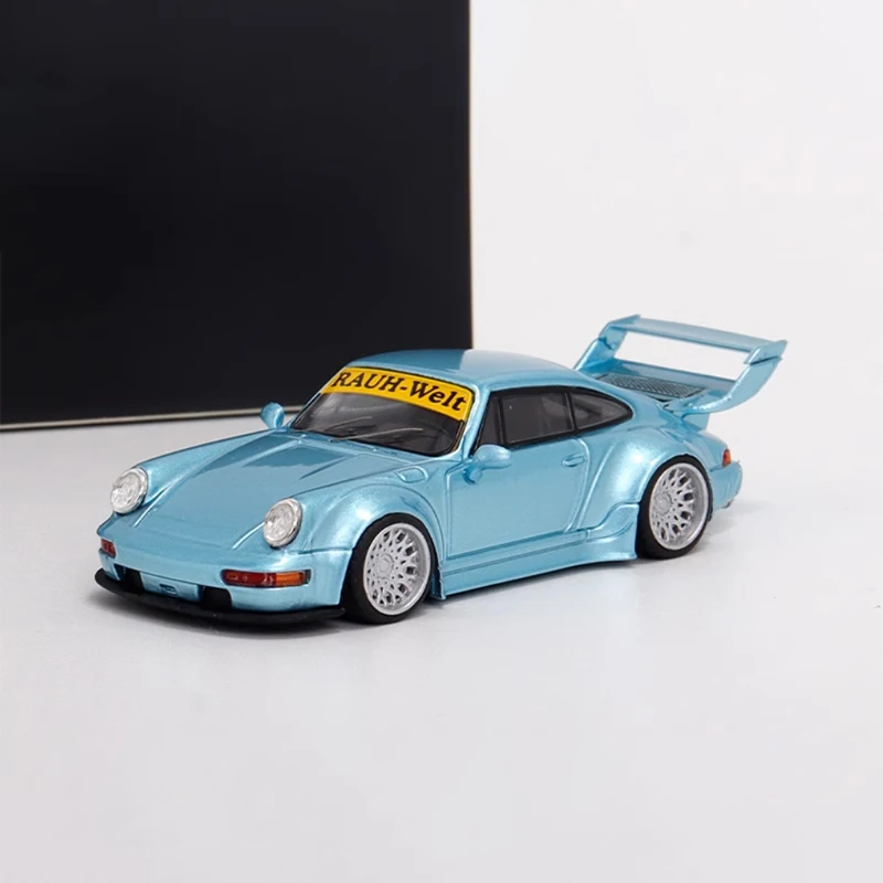Experience the elegance and precision of this detailed 1:64 scale Porsche 911 993 TPC 964 RWB alloy model. Its shimmering metallic light blue finish captures the sporty yet sophisticated look of the original vehicle. With smooth contours, realistic features, and prominent design elements such as a large rear wing spoiler, sculpted hood, rounded headlights, and black-tinted windows, this model exudes craftsmanship. Perfect for collectors and enthusiasts, it adds a touch of luxury to any display or collection. Remember, this is a delicate, adult-oriented piece meant for admiration and display, not play. Visualize yourself showcasing this elegance and craftsmanship in your own collection—an investment in automotive art and design.