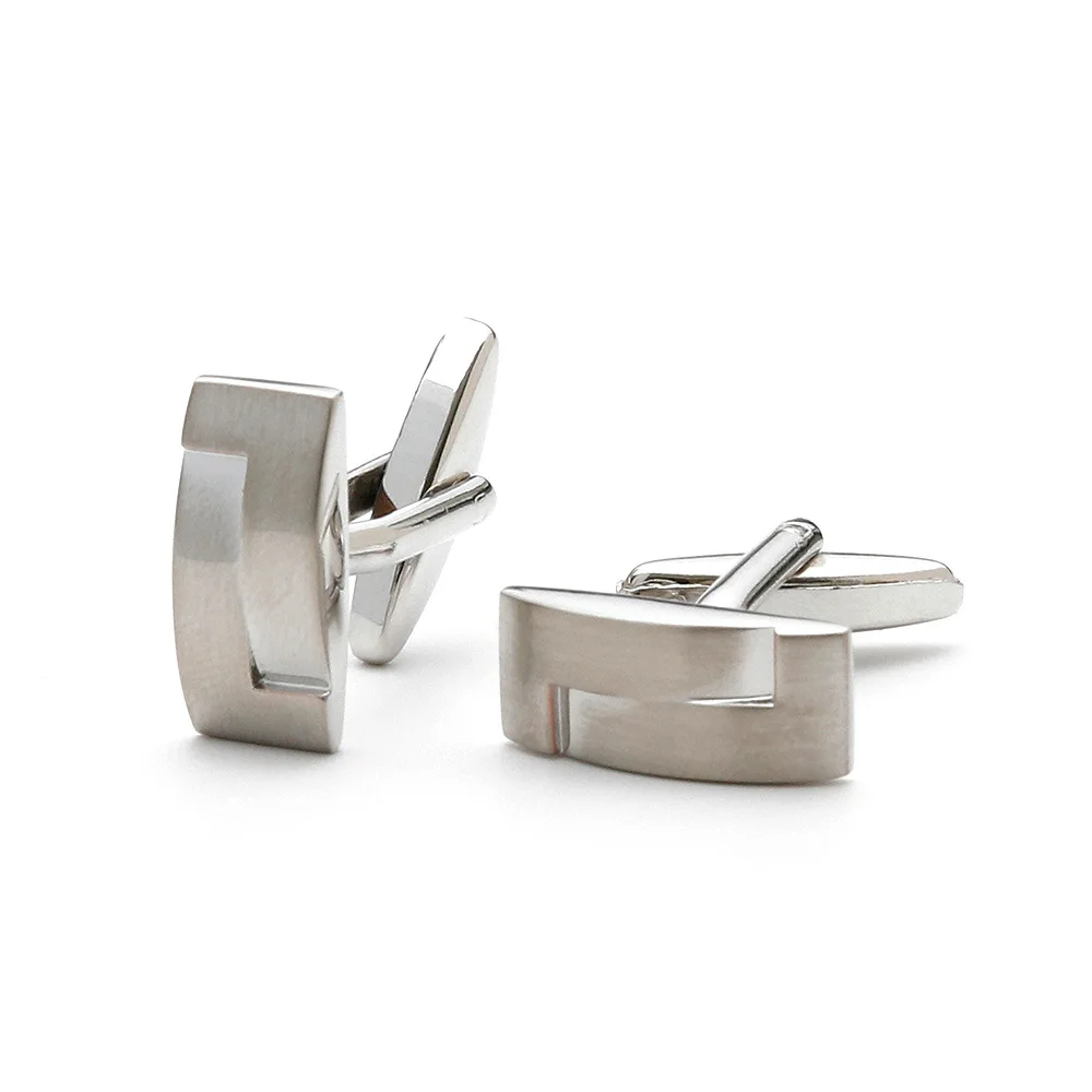 Light Grey Brushed Metal Cufflinks for Men and Women