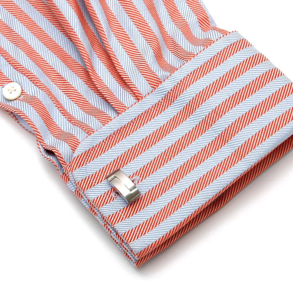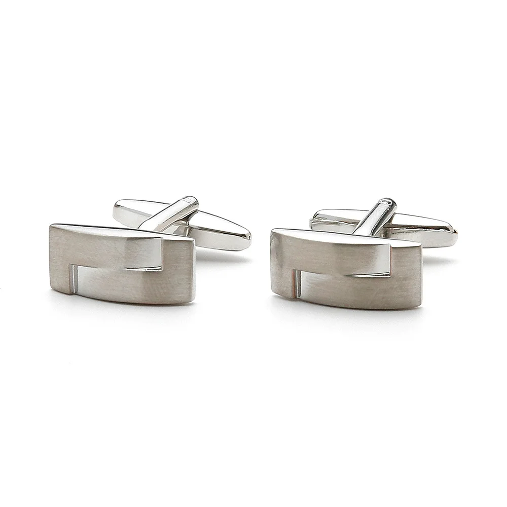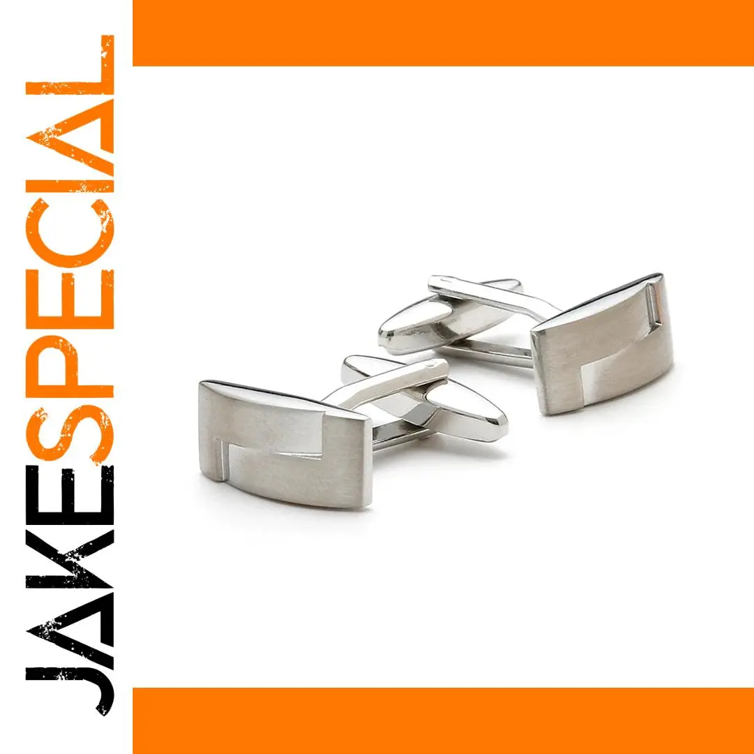 These sleek, square-shaped cufflinks are crafted from durable alloy with a brushed metal finish, showcasing a solid light grey color. Featuring a modern minimalist design with sharp, clean edges and subtle geometric details, including a small engraved rectangular cutout, they exude contemporary elegance. Measuring according to specified dimensions with a tolerance of ±1-3mm, these unisex accessories are versatile for various styles like retro, Viking, military, patriotic, punk, gothic, hip-hop, trendy, or formal attire. The polished toggle mechanism provides a secure fit, making them an ideal addition to jackets, backpacks, or DIY fashion projects for a refined, sophisticated look.