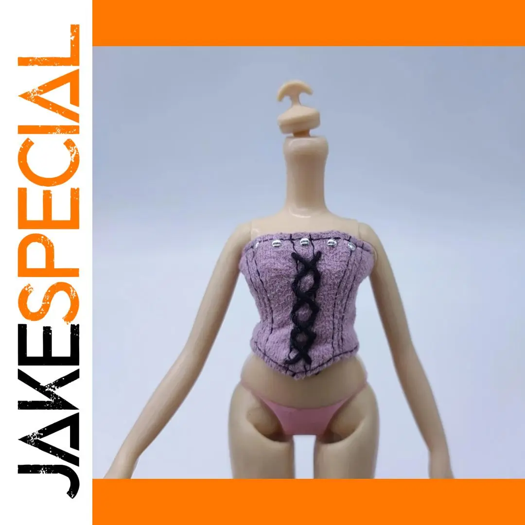 This fashionable strapless top is designed for 1/6 scale dolls, showcasing a gorgeous light purple color with a textured, rugged appearance. Adorned with metallic beads and a black lace-up detail, it adds a stylish contrast to the outfit. The articulated doll, featured for illustrative purposes only, highlights the beauty of the corset top without being included in the purchase. Paired with a simple light pink bikini bottom, this ensemble emphasizes versatility in doll fashion, allowing collectors to mix and match with ease and creativity. Elevate your doll's wardrobe with this chic accessory, perfect for any occasion.