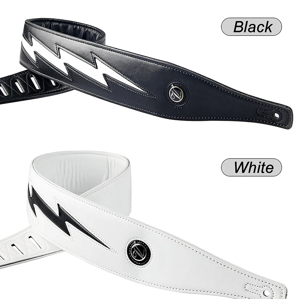Experience bold style and reliable comfort with this high-quality PU leather guitar strap, measuring approximately 6.3 cm (2.48″) in width and adjustable from 123 cm to 141 cm (48 to 55″). Featuring a modern lightning motif, available in striking black and white options, its sleek, durable surface provides a contemporary look for both acoustic and electric bass guitars. Reinforced attachment points ensure long-lasting performance, making it an ideal accessory for extended playing sessions. Elevate your guitar experience with this eye-catching, comfortable strap designed to combine style and support for dedicated musicians.