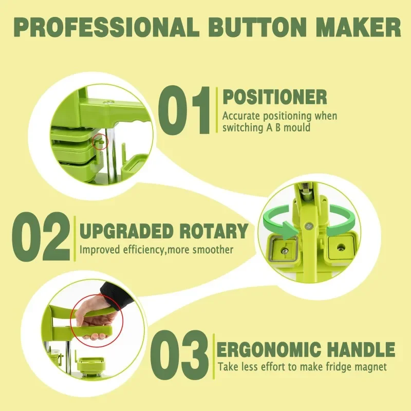 - Complete set options include the badge machine, 100 refrigerator magnets, and badge supplies, making it ideal for continuous creative projects.