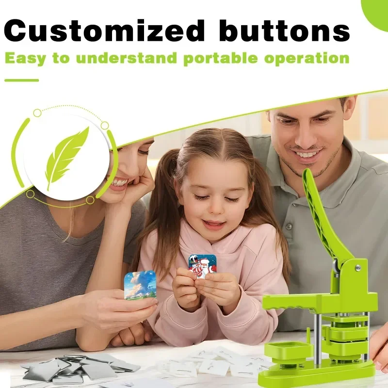 Discover the joy of creating personalized fridge magnets and badge pins with this vibrant lime green square badge machine. Designed for hobbyists and DIY enthusiasts, this compact device measures 50x50mm, making it ideal for crafting custom decorative items. Its sleek plastic surface, complemented by durable metal screws and hinges, ensures stability and ease of use. The machine comes equipped with an efficient mold that allows you to produce high-quality badges with detailed designs, whether for fun, gifts, or personal expression. With a variety of accessories, including magnet plates and blank substrates, this setup provides everything you need to unleash your creativity. Imagine decorating your fridge or gifting unique badges to loved ones—you’re just moments away from bringing your ideas to life.