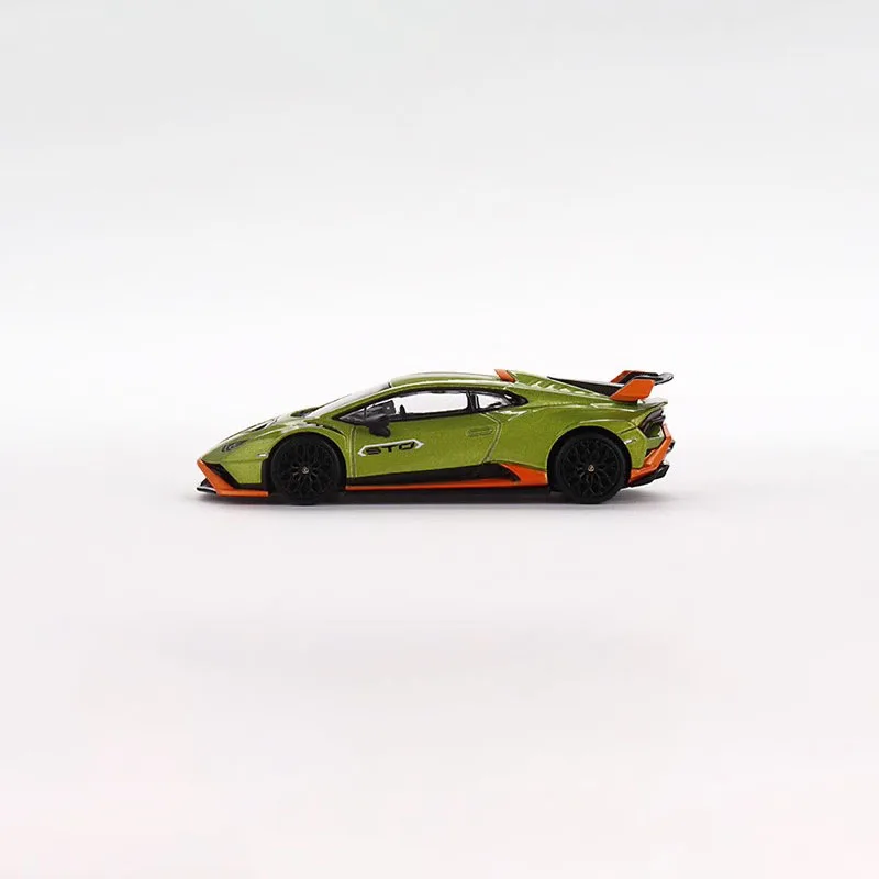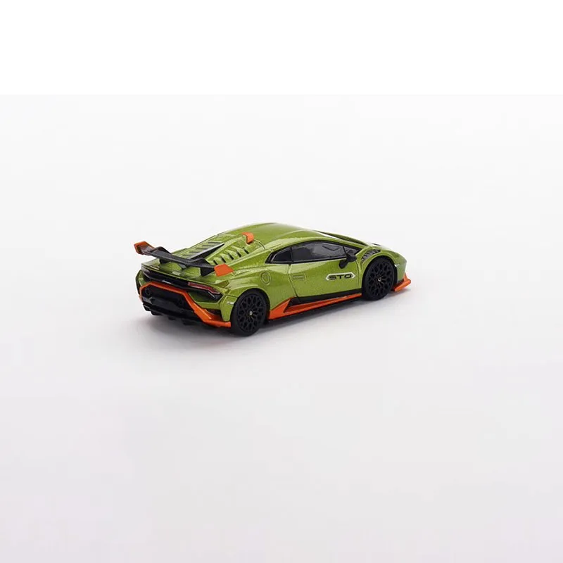 Experience the thrill of owning a meticulously crafted diecast model of the Lamborghini Huracan LP610 EVO STO, scaled perfectly at 1:64. This finished static display piece captures the essence of Lamborghini’s sleekest design with striking details, including the aerodynamic shape, sharp angular headlights, and contrasting black accents. The vibrant lime green finish covers the entire body, from the roof to the sides, making it a standout addition to any collection or display. The model features a prominent black rear wing spoiler, multi-spoke black rims, and orange accents on the front splitter and side skirts. With a highly detailed interior and realistic proportions, it evokes speed and precision, perfect for enthusiasts who desire an authentic replica.