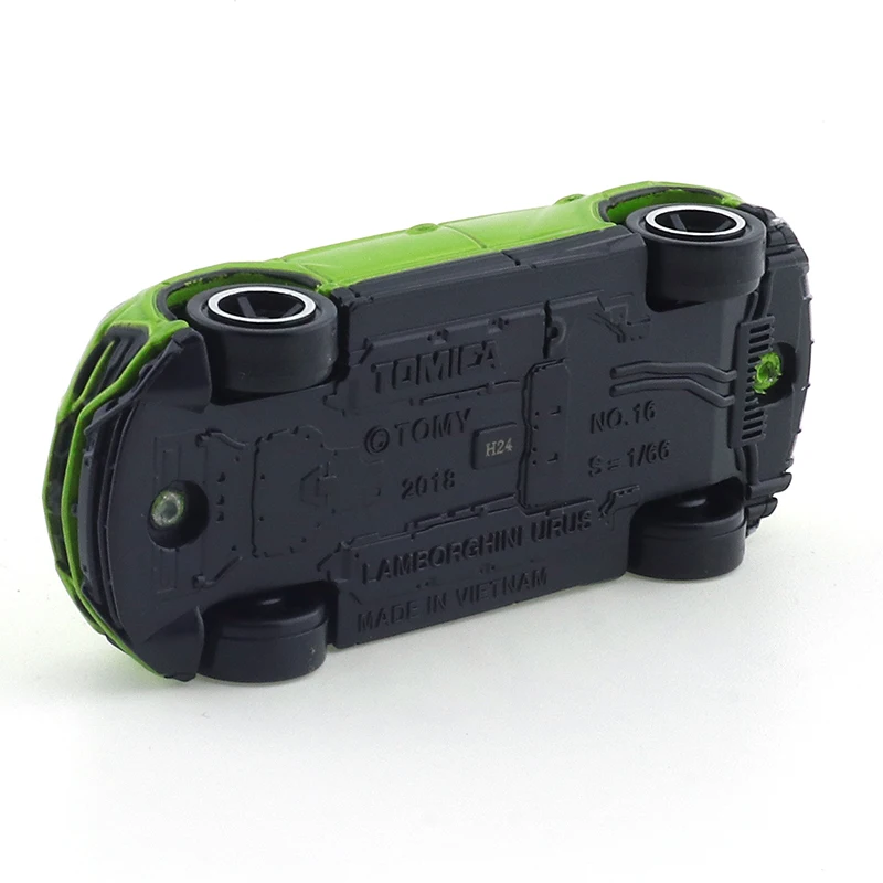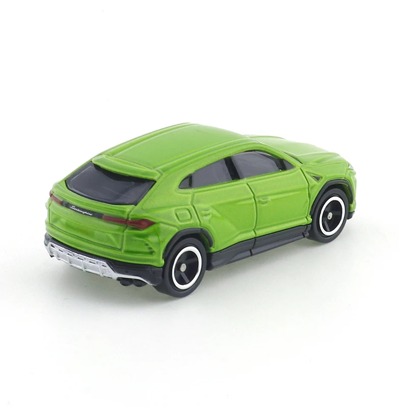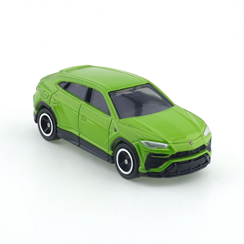 Experience the thrill of classic automotive design with this highly detailed 1:64 scale diecast metal Lamborghini Urus model by Takara Tomy. Featuring a vibrant lime green finish with a glossy surface, the model showcases a sleek, modern aerodynamic shape complete with sculpted hood, integrated headlights, black front grille, dark tinted windows with black borders, and finely detailed side mirrors and paneling. The multi-spoke black wheels with white accents are textured to resemble real rubber tires, while the rear includes a subtle roof spoiler and delineated taillights. Crafted from alloy material, this non-electric collectible is suitable for ages 14 and above, making it an ideal choice for enthusiasts and collectors who appreciate precision and craftsmanship.