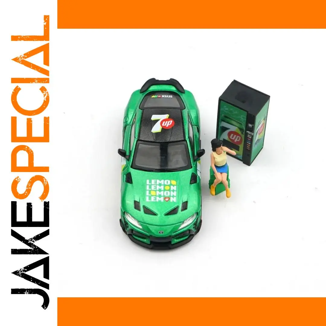 Step into the world of refined collectibles with this meticulously crafted 1/64 scale die-cast alloy car model, measuring approximately 7 centimeters. Designed for mature enthusiasts aged 14 and above, this model boasts a vibrant metallic green finish with a glossy surface that simulates a real vehicle’s dynamic appeal. Its detailed features include black-painted headlights, grille, and side mirrors, reflecting precision craftsmanship. Adorned with repeated yellow and green “LEMON” decals and a bold white “7” on the roof, complemented by a small red “up” symbol, the model exudes a sporty, promotional style perfect for display. Slight manual variations and minor flaws are part of its handmade charm, adding authenticity to each piece. This is a collectible item meant for admiration, not a toy.